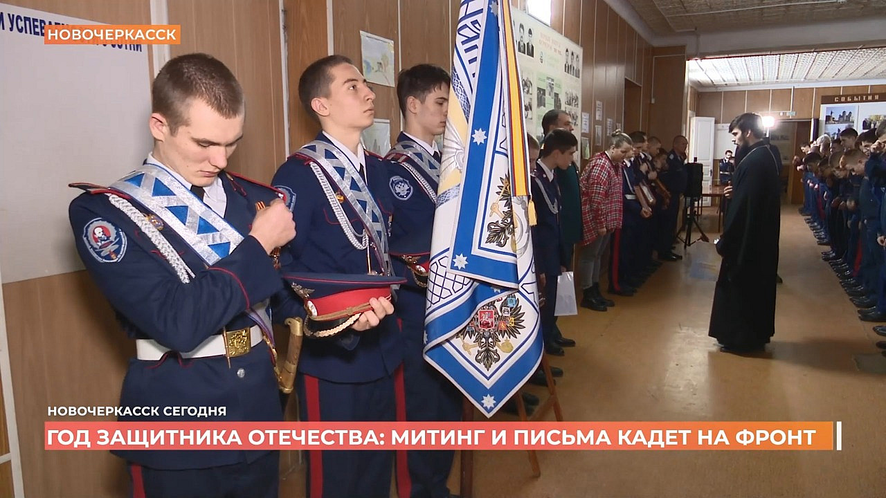 Митингом и акцией "Письмо солдату" начали новочеркасские кадеты 2025-ый как Год защитника Отечества. К ним в корпус пришли участник спецоперации и жена воюющего сейчас на СВО бойца.