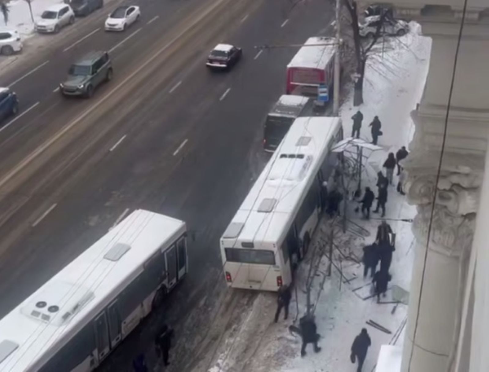 Пассажирский автобус протаранил остановку общественного транспорта на пр. Будённовском - в районе Дома офицеров.