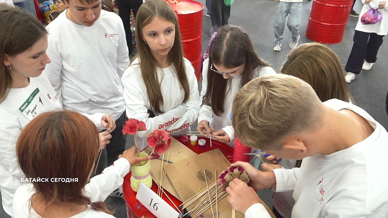 Творческой мастерской для тех, кто любит природу и готов ей помогать, стал экочемпионат. Участники Движения первых попытались показать, как еще могут послужить отходы. Тут и арт-объекты, и бытовые вещи - сейчас всё увидим.