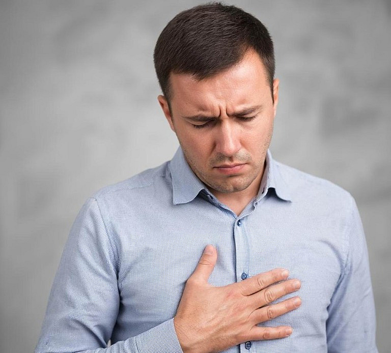 ✔ Боль в груди, которая может усилиться, например, при вдохе и пройти при изменении положения тела.