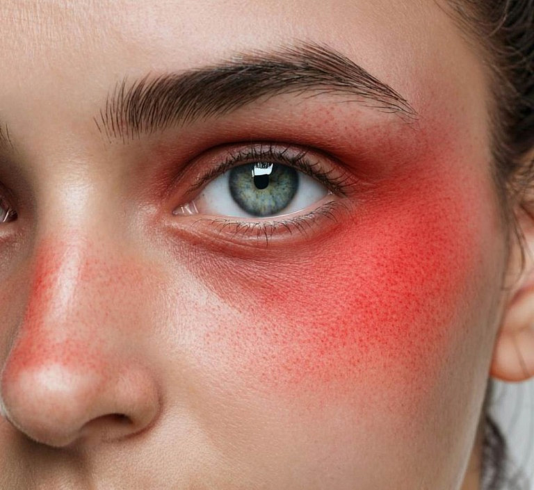 Аллергия часто проявляется отеками слизистых или высыпаниями на коже.