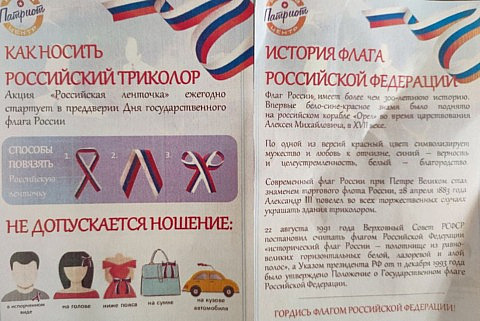 С сегодняшнего утра по всему городу юные волонтёры раздают ленточки-триколоры с памятками: