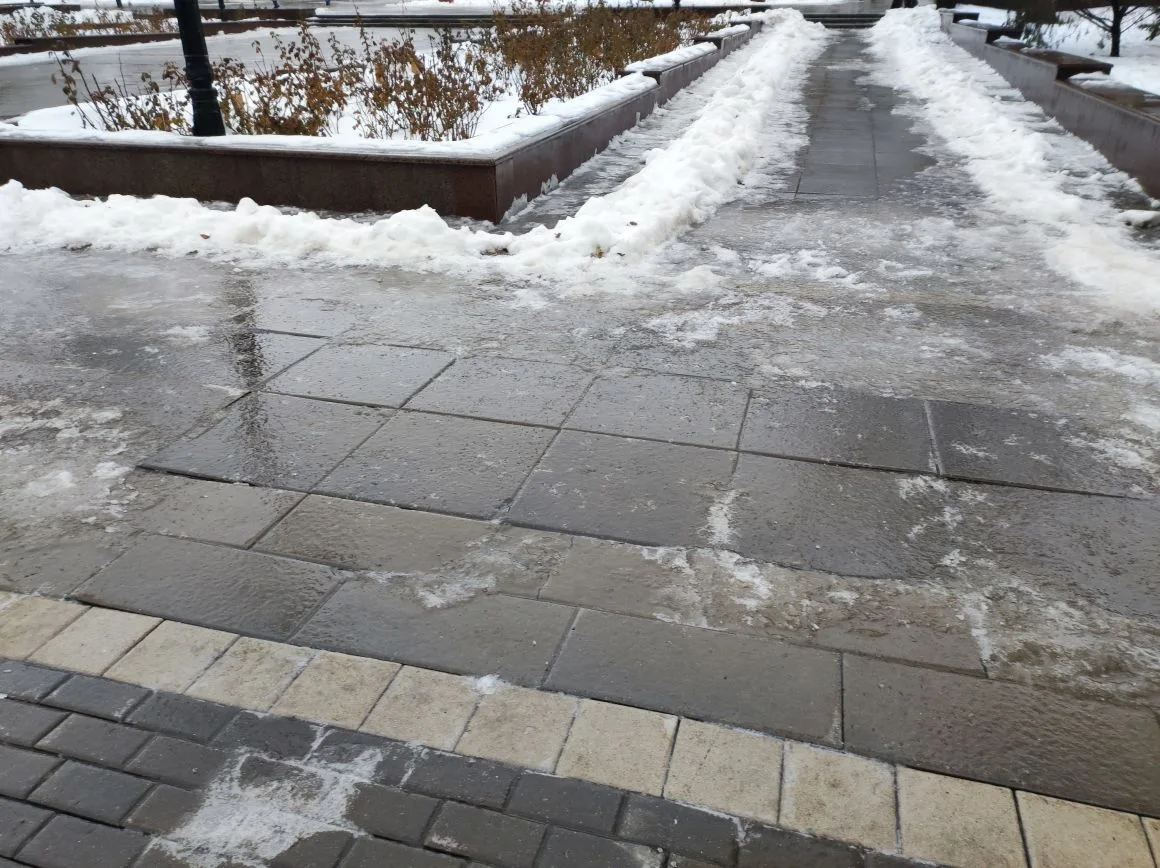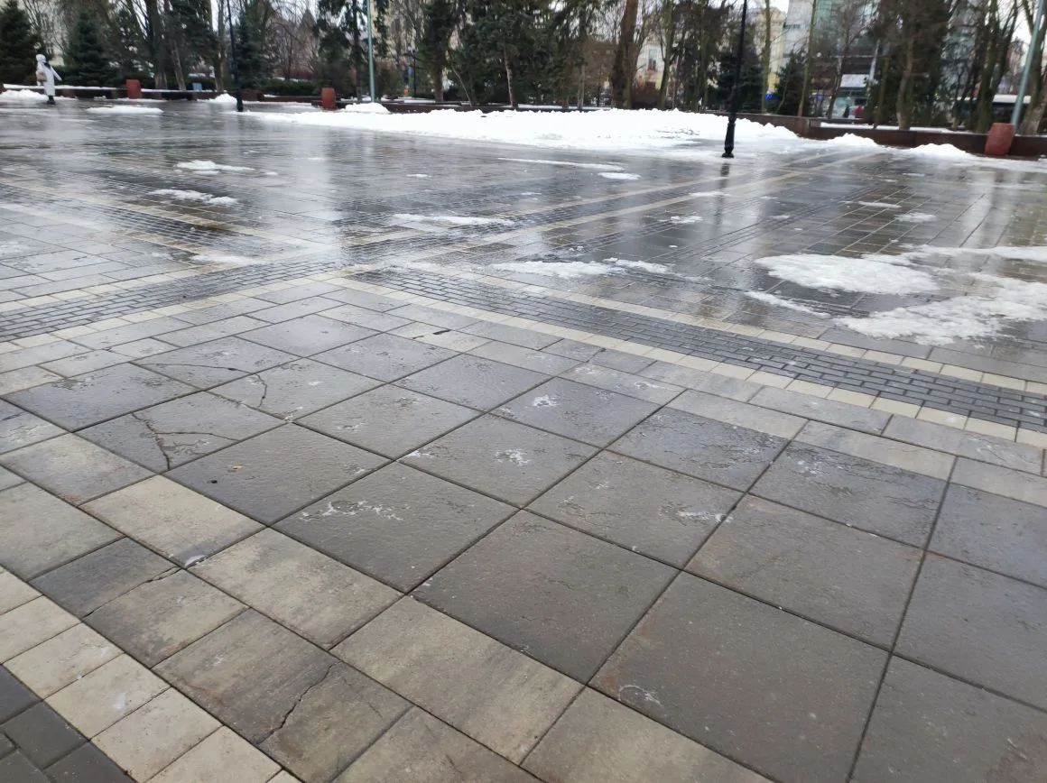 И если трассы худо-бедно были обработаны противогололёдной смесью, то дворы и тротуары, в том числе в центре, с утра превратились в сплошной каток.