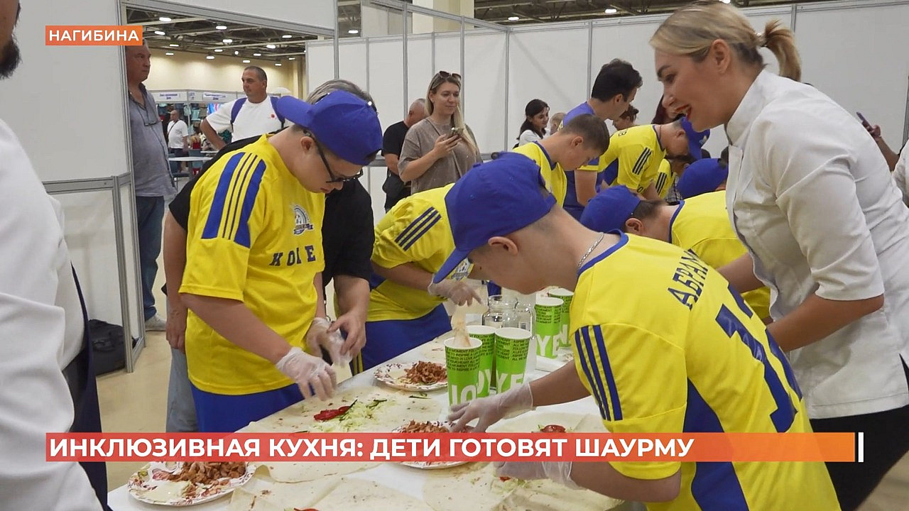 Листья салата, овощи, лаваш, сыр и мясо: все вместе обжариваем на гриле. На "инклюзивной кухне" необычные повара. Дети с ОВЗ решили попробовать свои силы в приготовление шаурмы. Получилось сытно и ароматно.