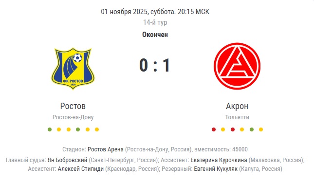 В рамках 14-го тура сезона 2025/26 сегодня «Ростов» принимал тольяттинский «Акрон».