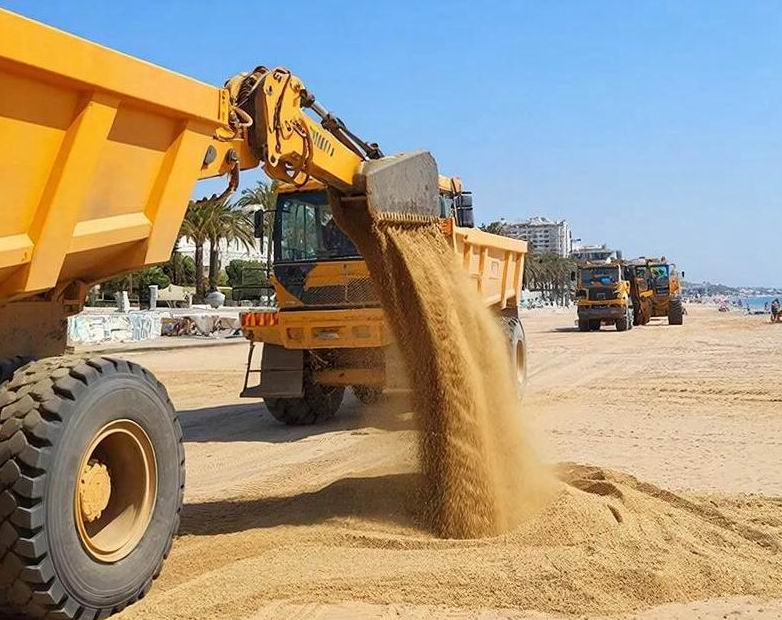 Для отсыпки выбран песок из ближайших карьеров, по составу максимально близкий к исходному, — он содержит кварц и биокарбонаты (частицы раковин моллюсков). Это позволит сохранить природные характеристики пляжа.