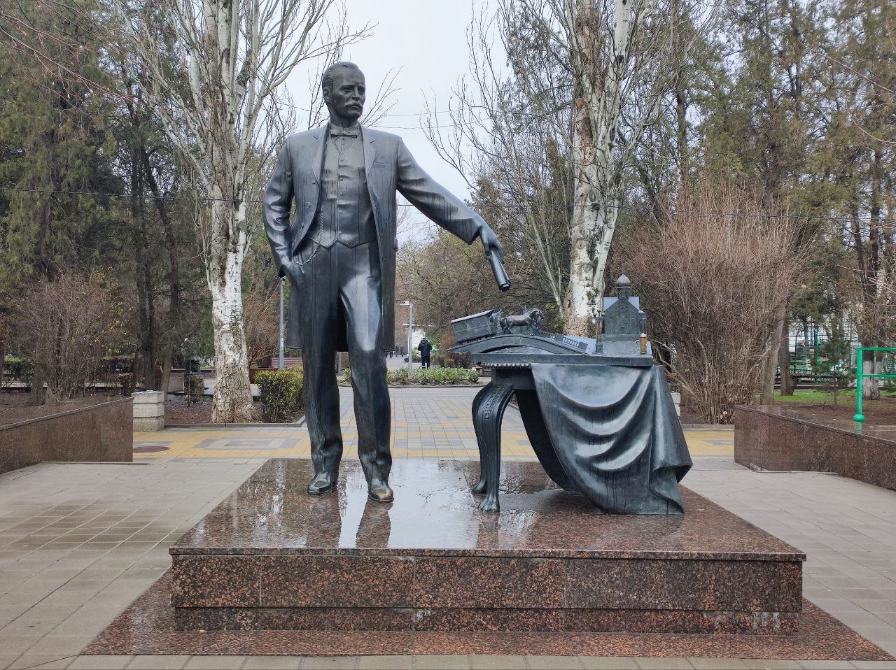 Памятник Лермонтову возле Спасского собора в Пятигорске — первый в России памятник Михаилу Юрьевичу, установленный в 1889 г., в год 75-летия классика. Для ростовчан, наверное, будет любопытно и важно, что одним из инициаторов установки этого памятника был Андрей Матвеевич Байков. Средства на монумент собирали всем миром.