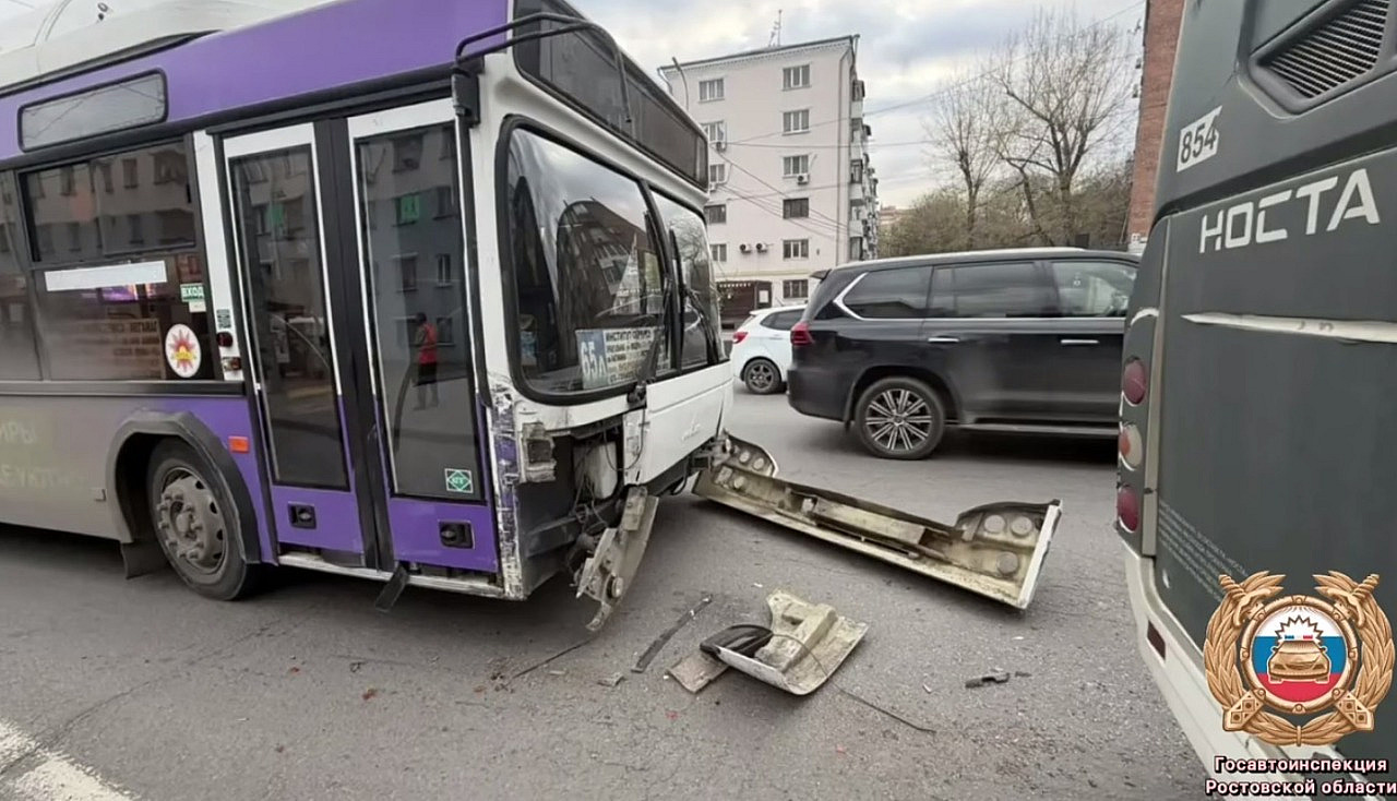 По соцсетям разлетелись кадры жёсткого столкновения двух автобусов с пассажирами в донской столице.