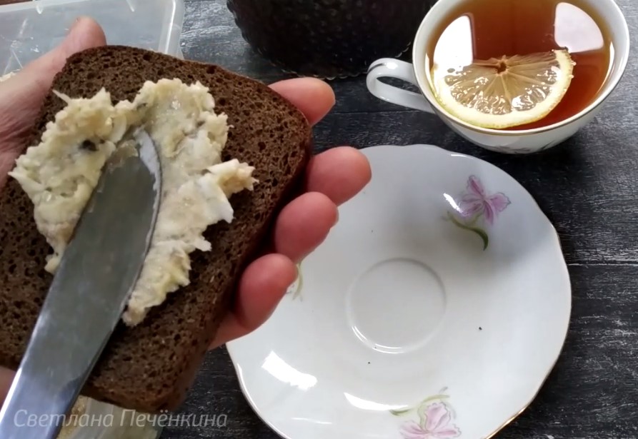 Обычно я чуть подсушиваю хлеб в тостере, даю ему остыть и намазываю форшмак. Мужчины почему-то утверждают, что лучшая пара для этой немудрёной, но очень вкусной, закуски — это ледяная водка. Я же уверена, что самое лучший друг форшмака — это горячий сладкий чёрный чай. Можно с лимоном. Просто идеальная пара!