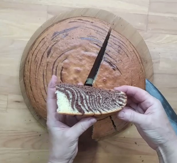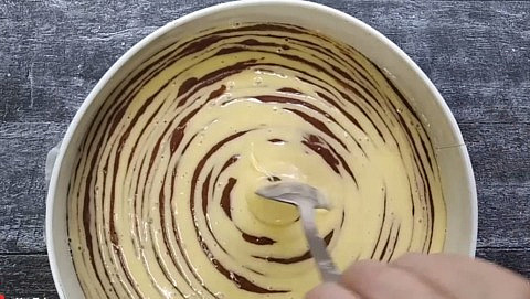 5. Духовка заранее разогрета до 180*С, выпекается «Зебра» 40-45 минут. Проверяем готовность деревянной палочкой, она должна выходить из теста сухой.