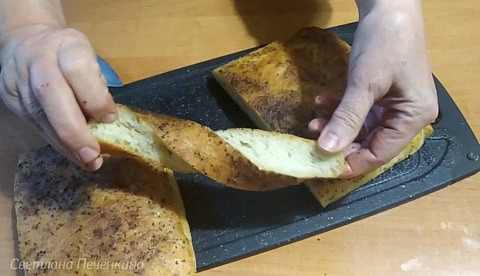 4. При разрезании этого хлеб совсем нет крошек. Он пластичный, но не «резиновый». Чем-то похож на хорошего качества лаваш.