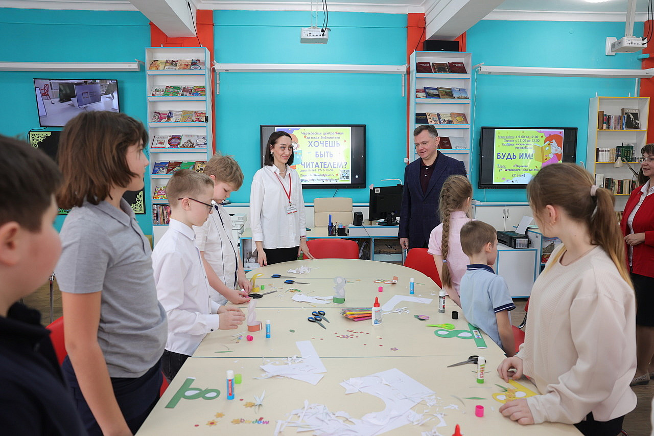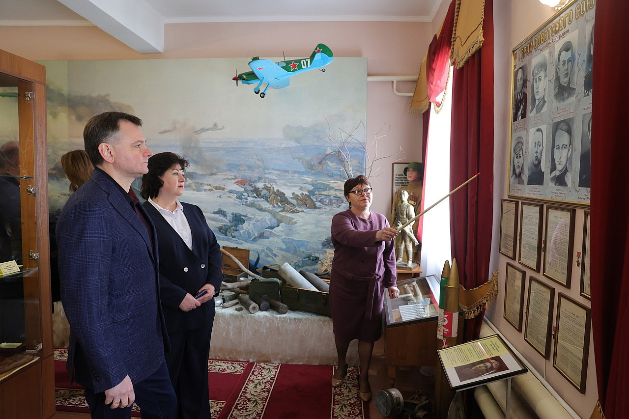 В Чертковском историко-краеведческом музее (ежегодно почти 6 тысяч посетителей) Юрий Слюсарь осмотрел новый раздел, посвященный участникам СВО, а также посетил модульную библиотеку для взрослых и детей — гордость района.