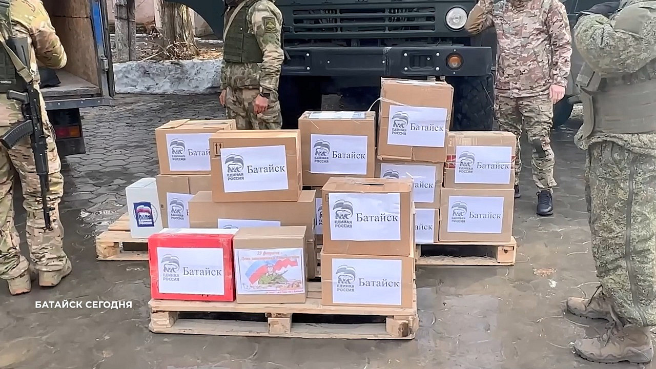 Продукты , медикаменты, вода, подарочные наборы, а также угощения от батайских семей - в местном отделении Единой России собрали и передали на фронт гуманитарный груз для бойцов СВО из казачьей бригады "Дон".