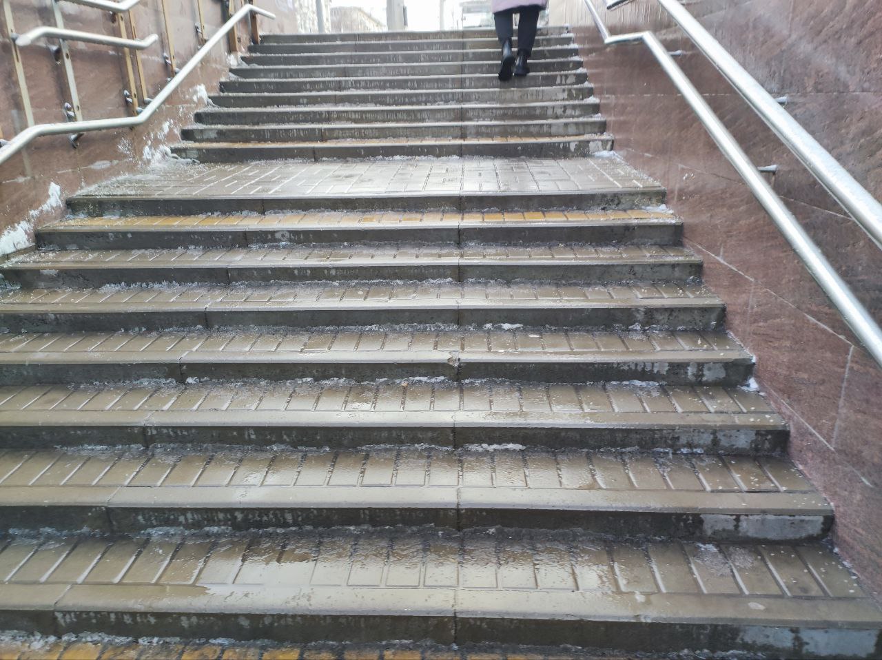 К утру основные ростовские магистрали были обработаны антигололёдными материалами. Тротуары с высоким трафиком, ступени подземных переходов также обработаны.
