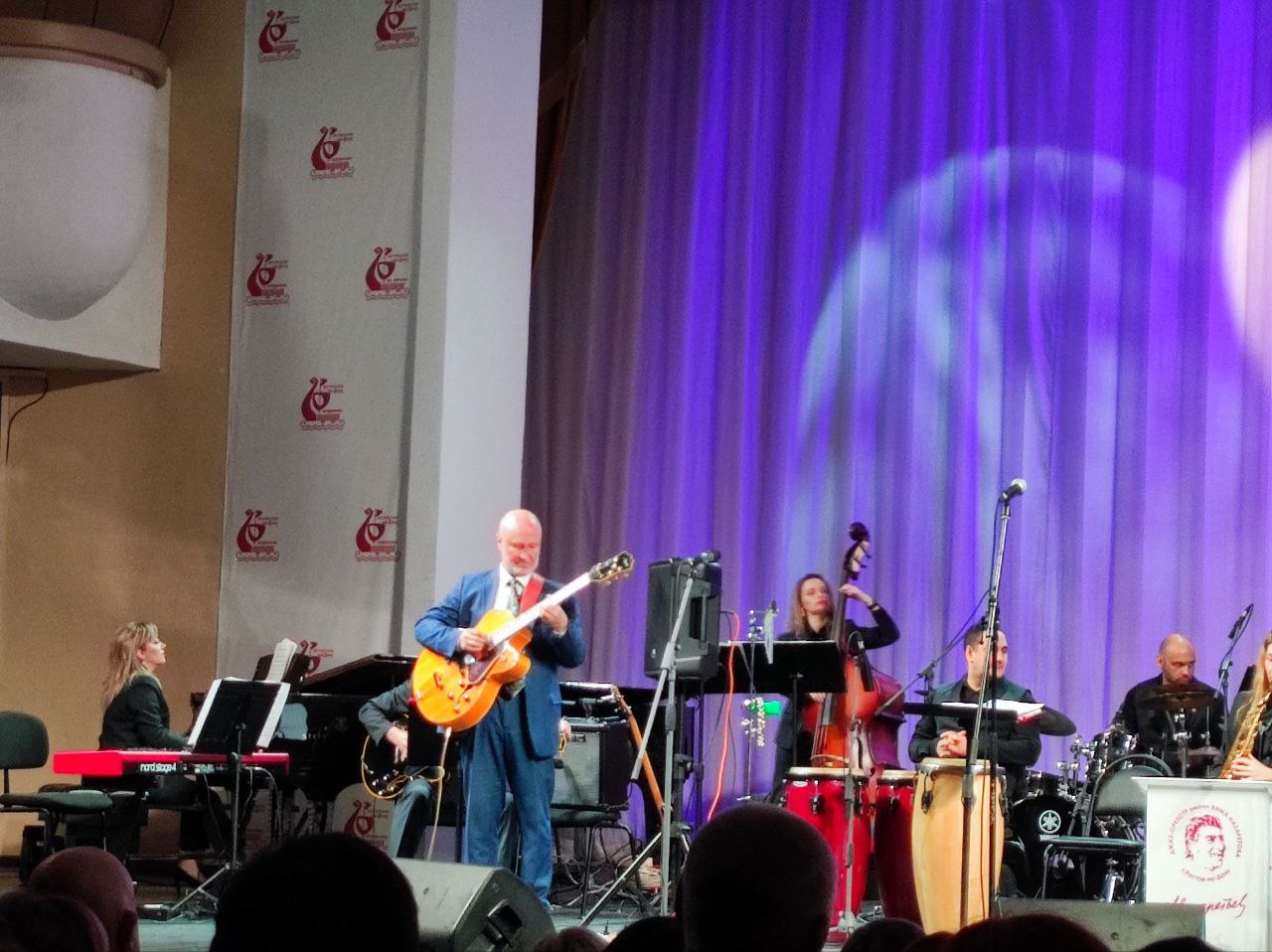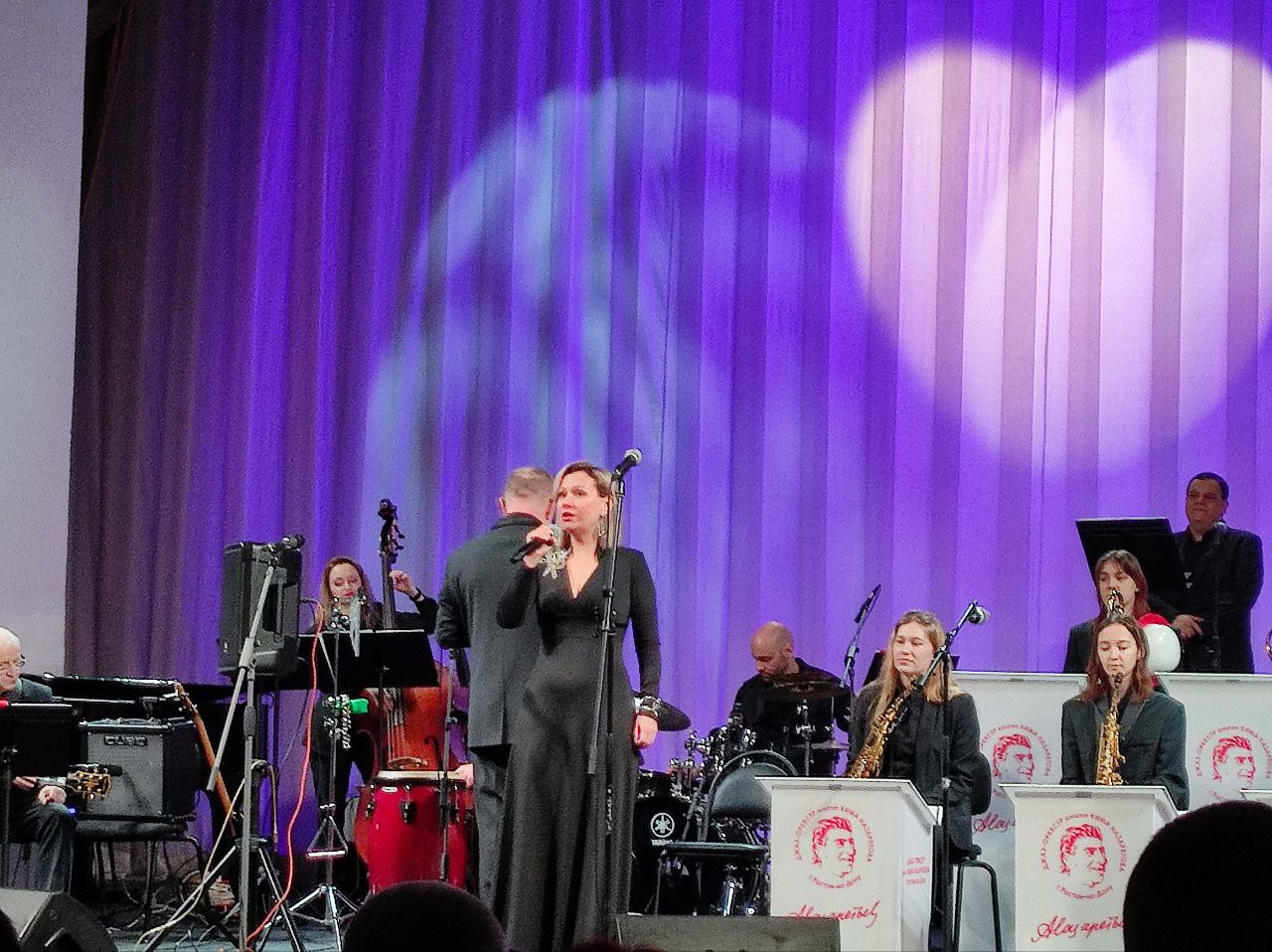 Потом эту эстафету конферансье перехватил джазовый певец Евгений Пирогов - он оказался попассионарнее и позажигательнее. Что, в общем, и спасло во многом концерт.