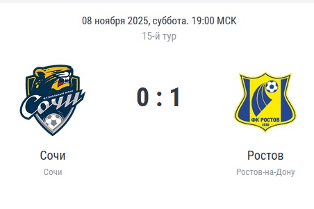 Итог встречи - 0:1. "Ростов" поднялся на 9-е место, "Сочи" - остался при своём.