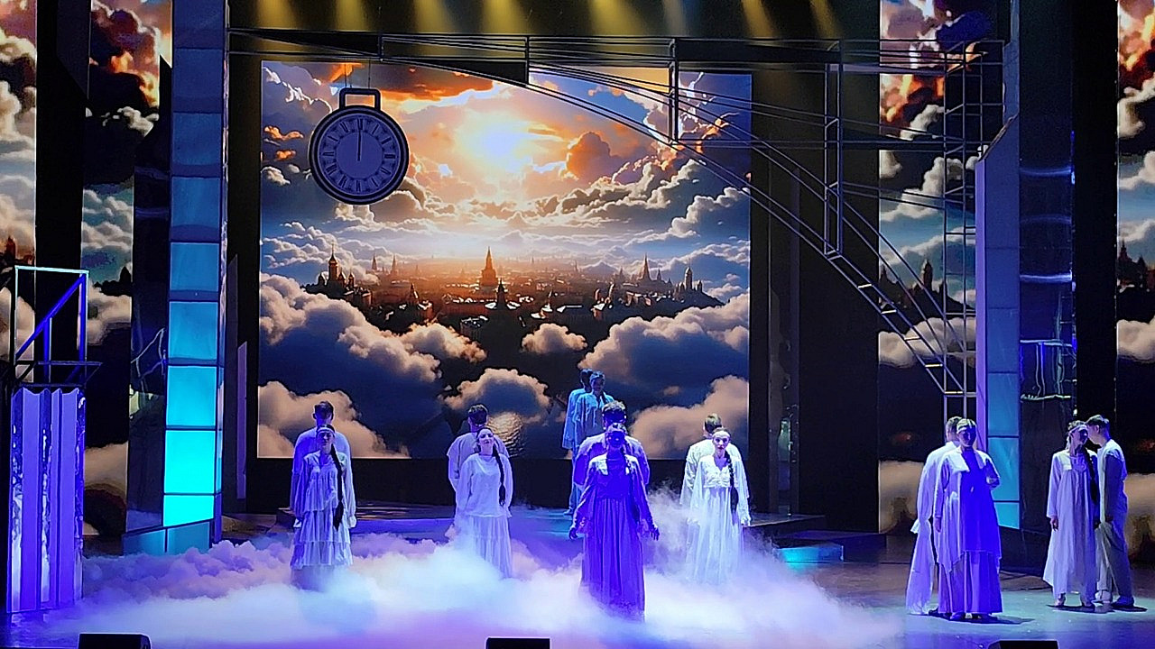 Вообще, это, как мы уже сказали, больше не спектакль, а скорее – яркое шоу. Здесь нет места тривиальности, очень мощный и качественный звук, яркая палитра цвета. И это не только костюмы героев различных эпох, но и современный театральный свет в сочетании с мультипликацией, отображаемой на огромном экране, а также на нескольких видеопанелях по порталам.