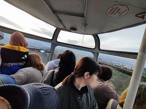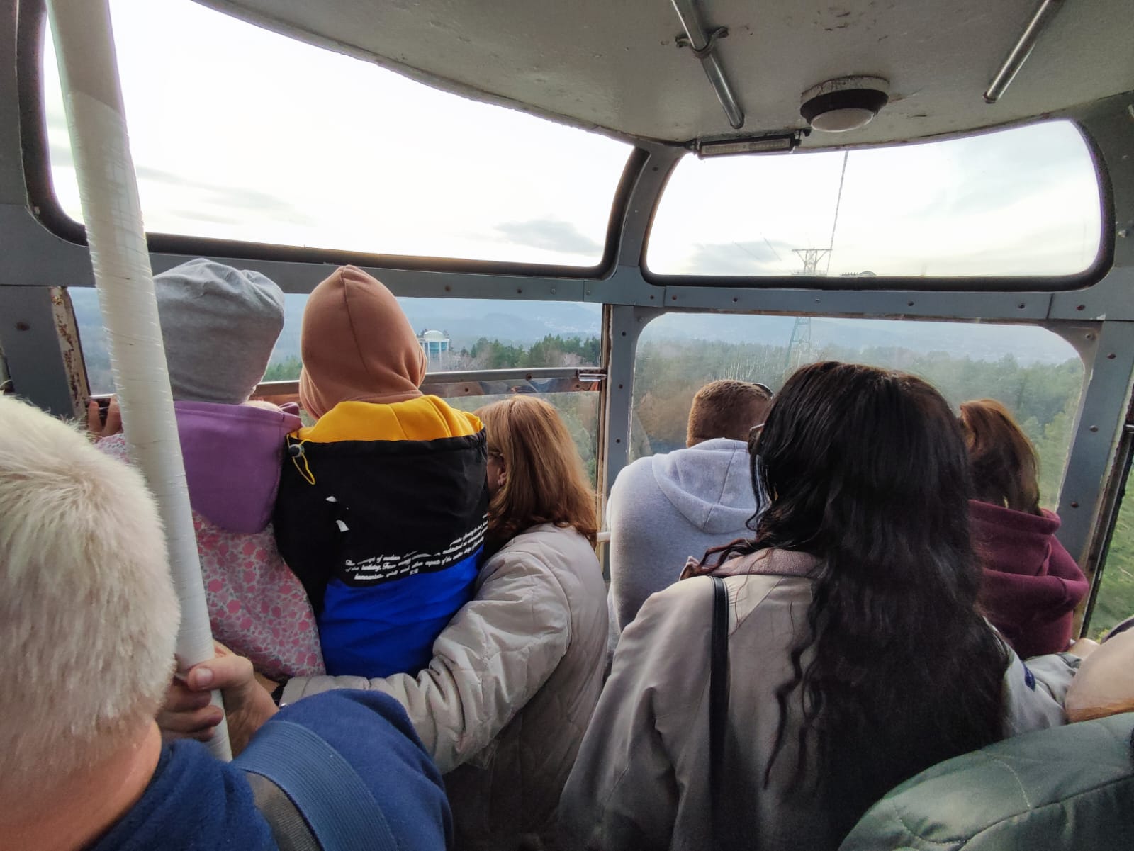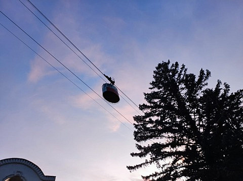 Вообще, она такая маленькая! От нижней станции едешь восемь минут в переполненном вагончике, а ждёшь очереди от получаса до полутора. И не то чтобы было много желающих - просто всего две кабинки...