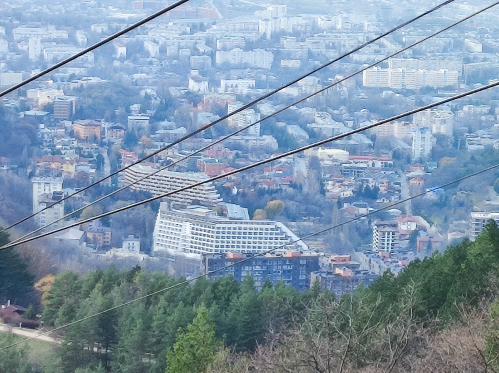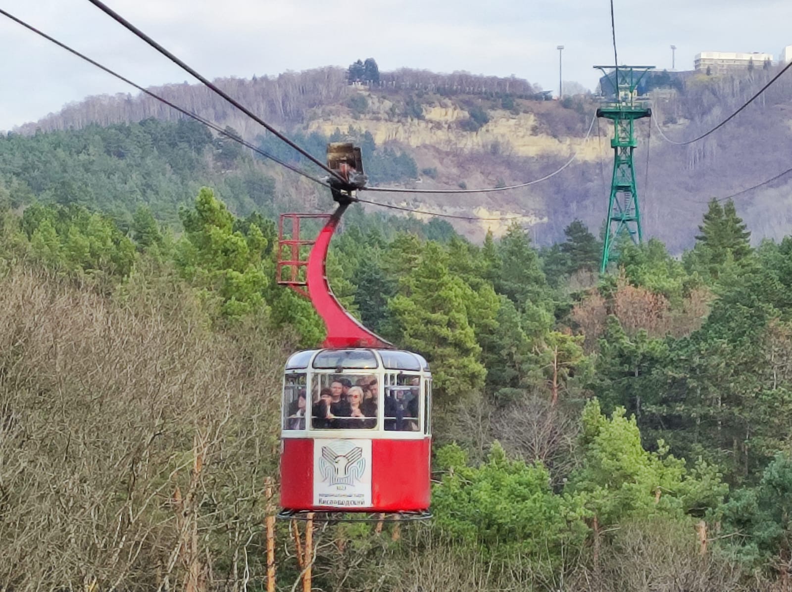 Из кабинки открываются виды не только на Долину роз, но и на Синие камни, памятник Михаилу Лермонтову, гору Красное солнышко, гроты туристической тропы и даже на Эльбрус.