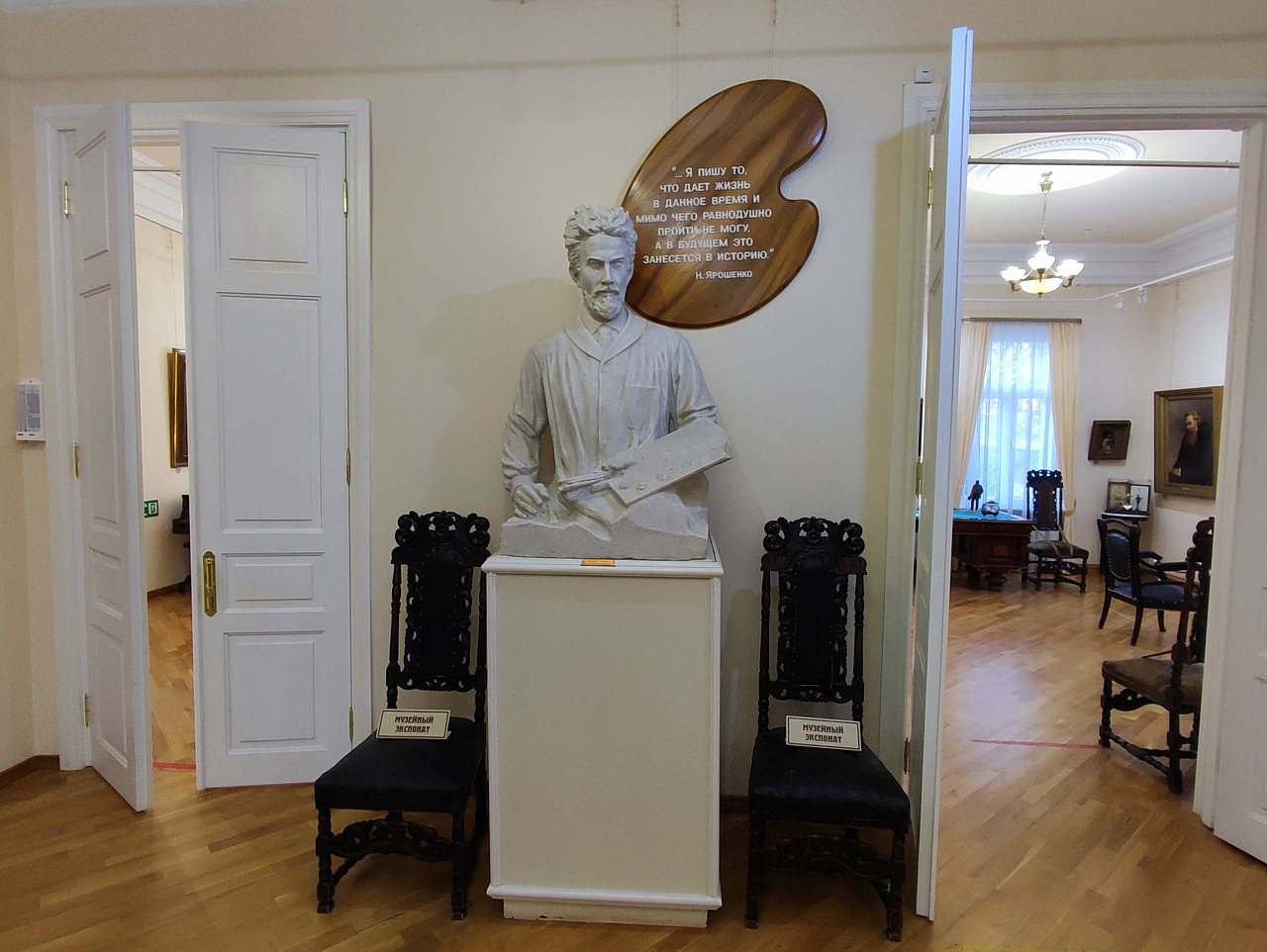 В других строениях располагаются постоянные и временные экспозиции - их фондов музей. Здесь подлинники самого Н.А,Ярошенко, а также В.Г.Перова, А.К.Саврасова, Г.Г.Мясоедова, В.Е. и К.Е.Маковских, М.В.Нестерова, А.М.Васнецова, И.Э.Грабаря, С.Т.Коненкова, М.К.Аникушина и других.