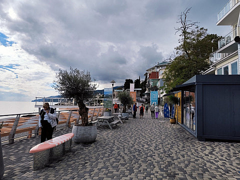 Сегодня 1 октября, и, по сообщениям синоптиков, день должен был быть таким же дождливым, как и вчерашний. Но, на удивление, ближе к обеду немного распогодилось – и у нас затеплилась надежда, что, может, сегодня получится поплавать в море. И хотя температура в 16 градусов к тому не располагала, а после обеда обещали опять дождь, мы, надев куртки и на всякий случай прихватив пляжные принадлежности, выдвинулись в сторону моря.