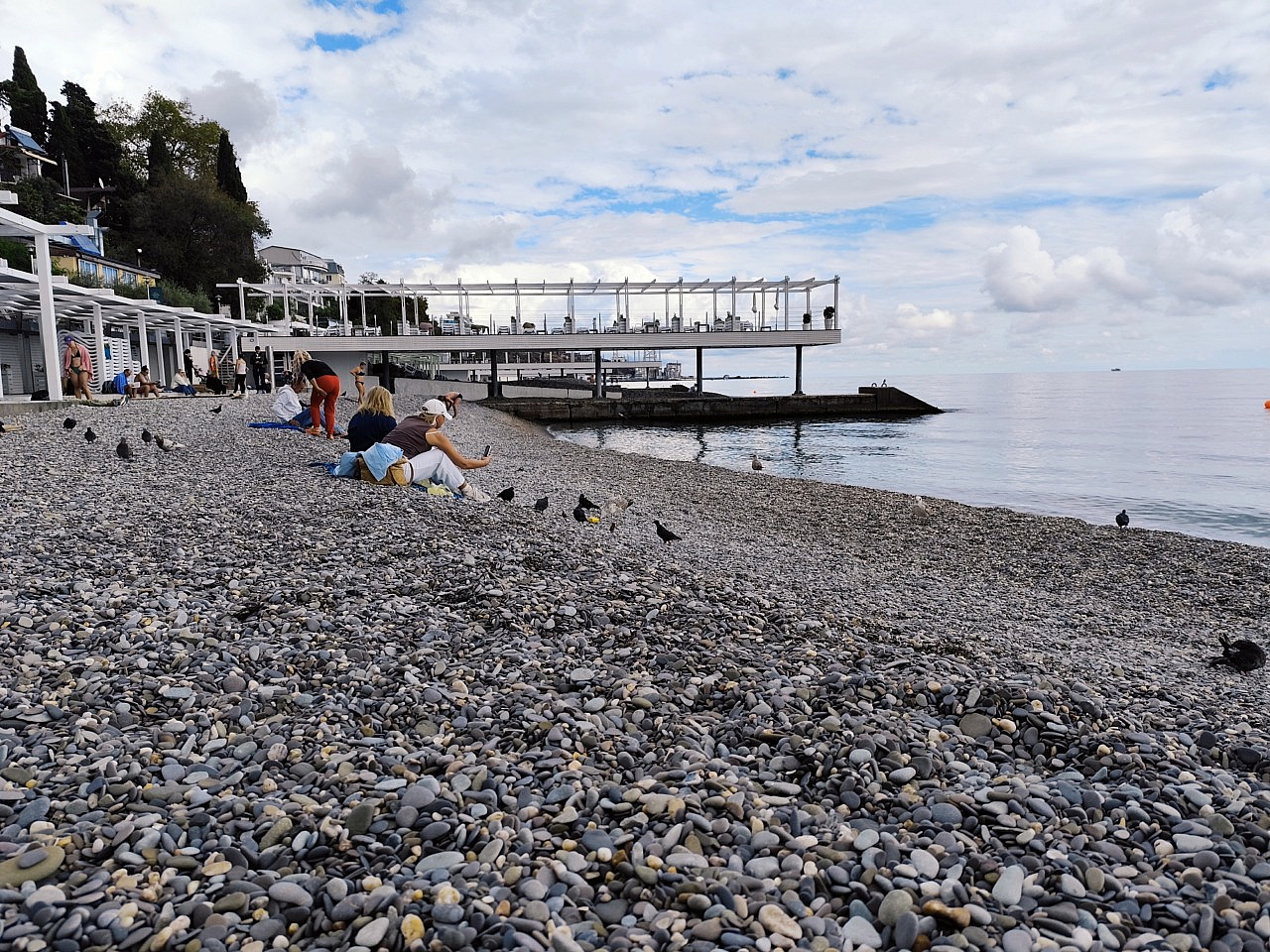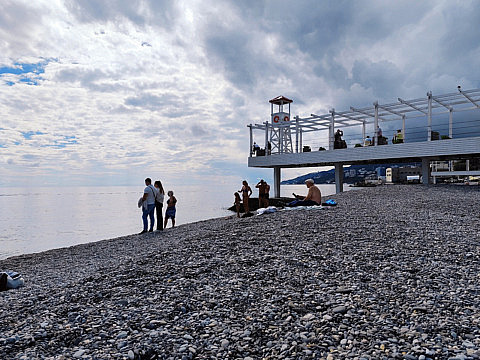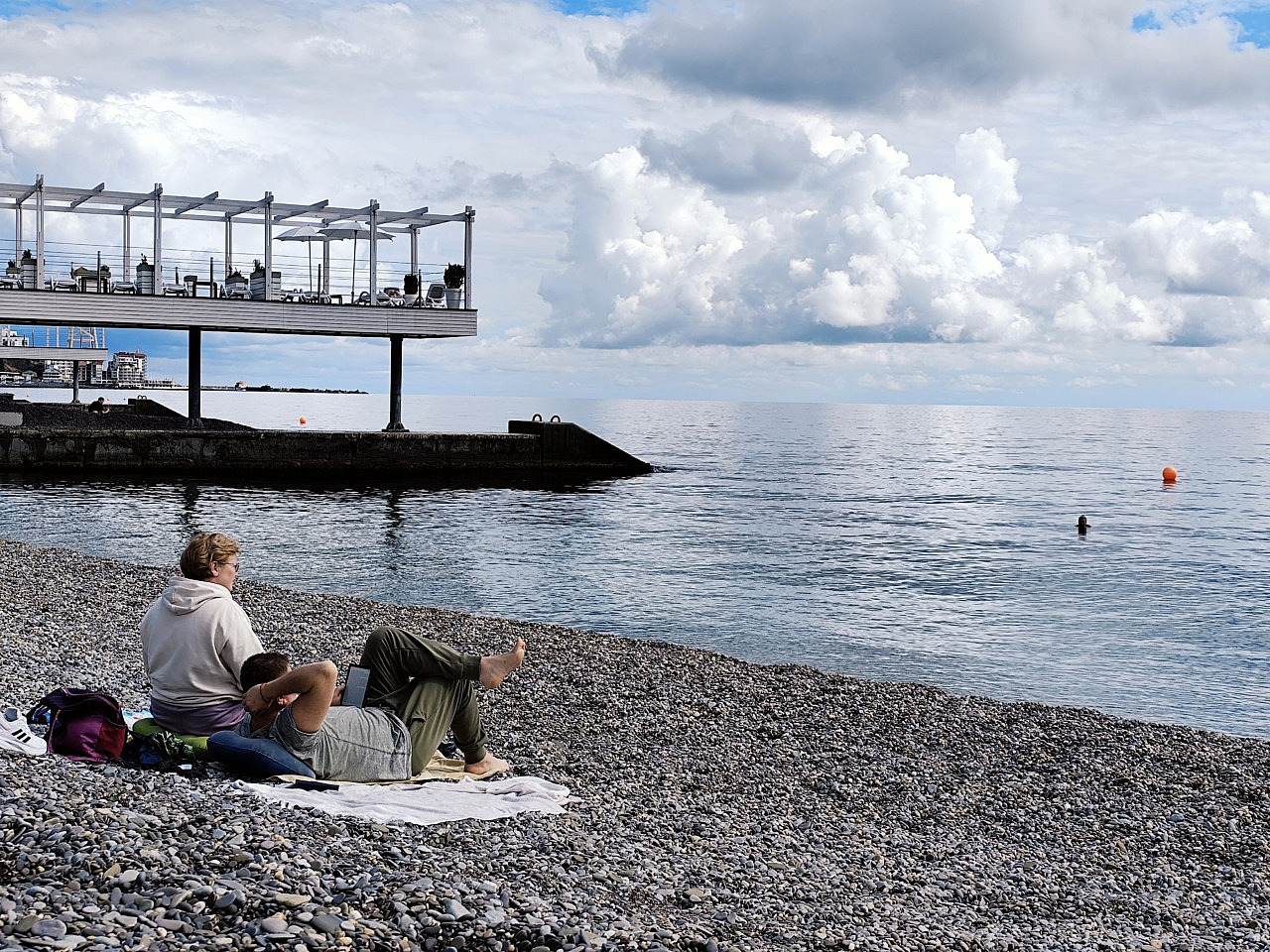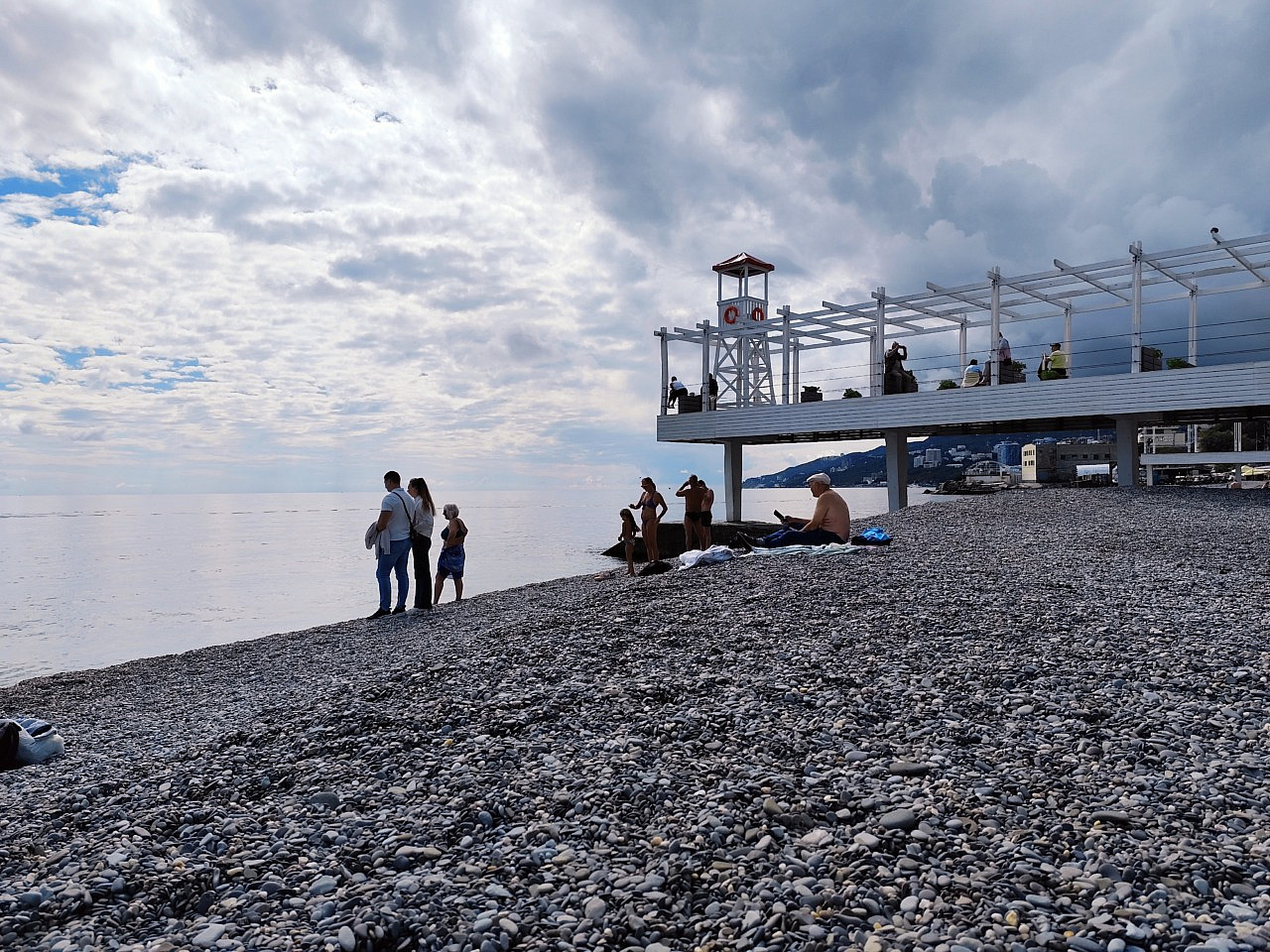 Как выяснилось, поступили мы правильно - на море практически штиль, температура воды – 17-18 градусов, и рядом с водой вполне комфортная температура. А скупые солнечные лучи, иногда пробивавшиеся сквозь дождевые тучи, затянувшие юго-запад, даже согревали.