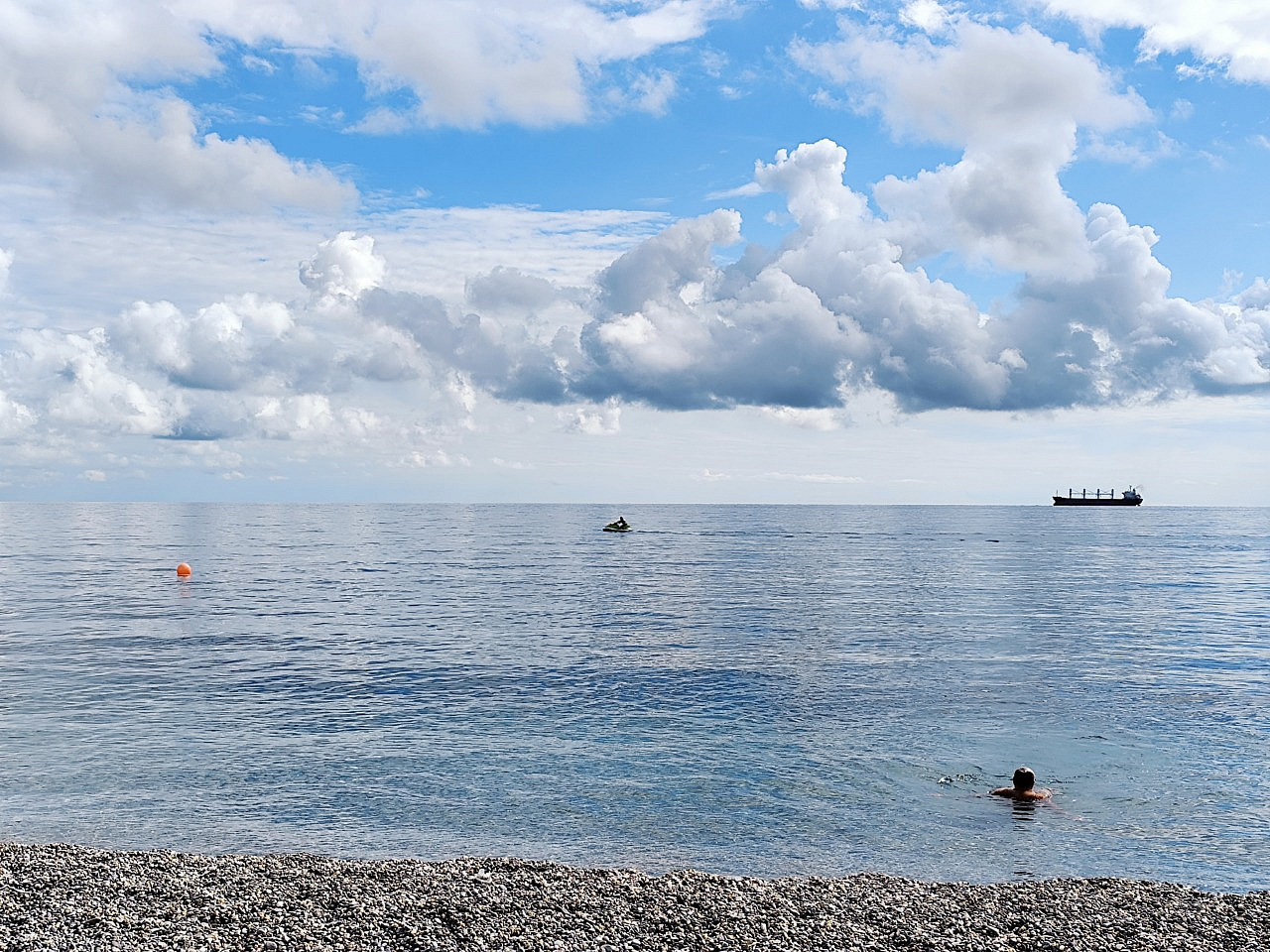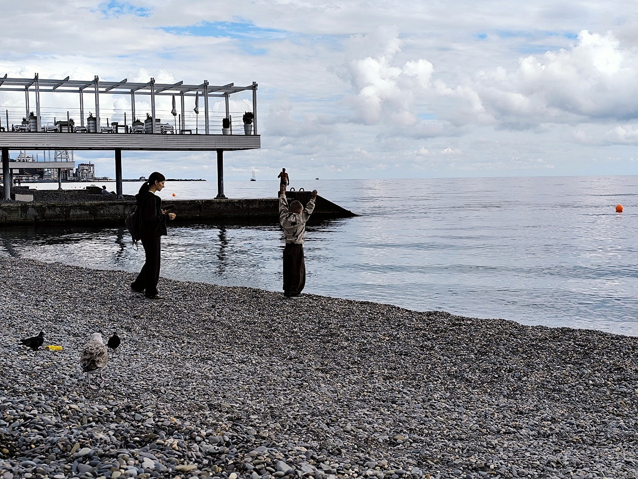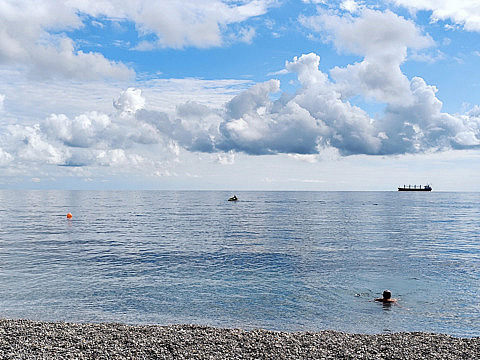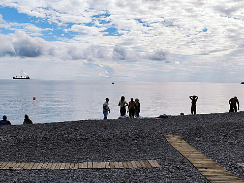 Как выяснилось, поступили мы правильно - на море практически штиль, температура воды – 17-18 градусов, и рядом с водой вполне комфортная температура. А скупые солнечные лучи, иногда пробивавшиеся сквозь дождевые тучи, затянувшие юго-запад, даже согревали.