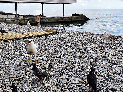 И только чайки своими криками и суетой прерывают эту безмятежную релаксацию. Они почувствовали себя хозяевами положения и твердо уверовали, что люди сейчас на пляже именно для того, чтобы их кормить.