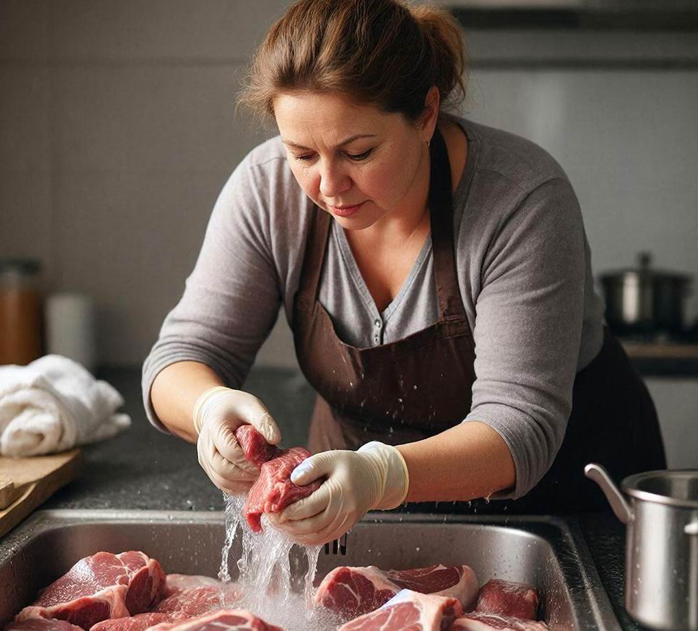 Далеко не каждая хозяйка принимается за чистку раковины после мытья мяса. Так что лучше вовсе отказаться от этой процедуры и не подвергать родных смертельному риску. Термическая обработка все равно справится с задачей лучше: убьет микроорганизмы, не позволив их распространению по кухне.