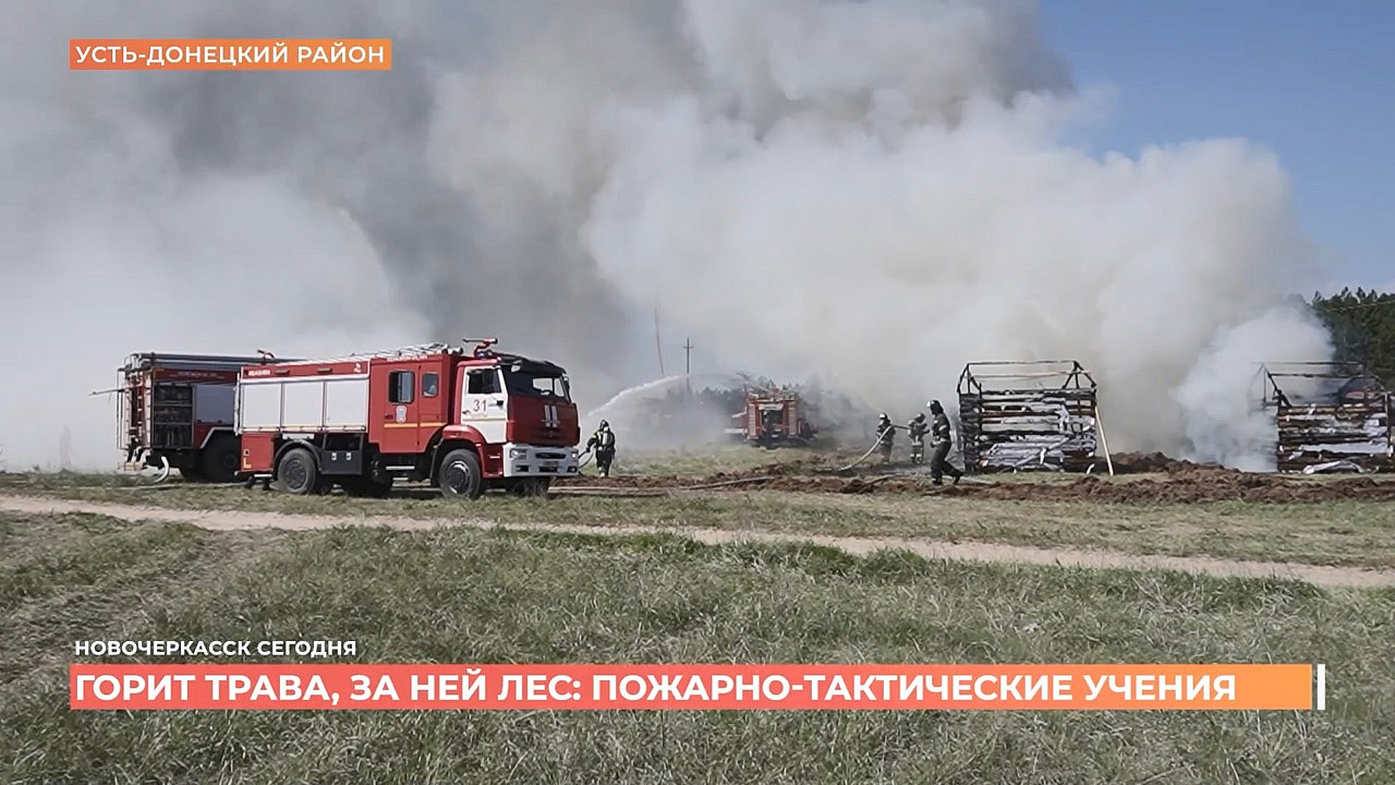 Вспыхнуло в траве, перешло на лес и угрожает домам. Как это потушить, а еще лучше не допустить. По всей области начались масштабные пожарные учения, к которым присоединились и новочеркасские спасатели. А за ликвидацией условного пожара следим в Усть-Донецком районе