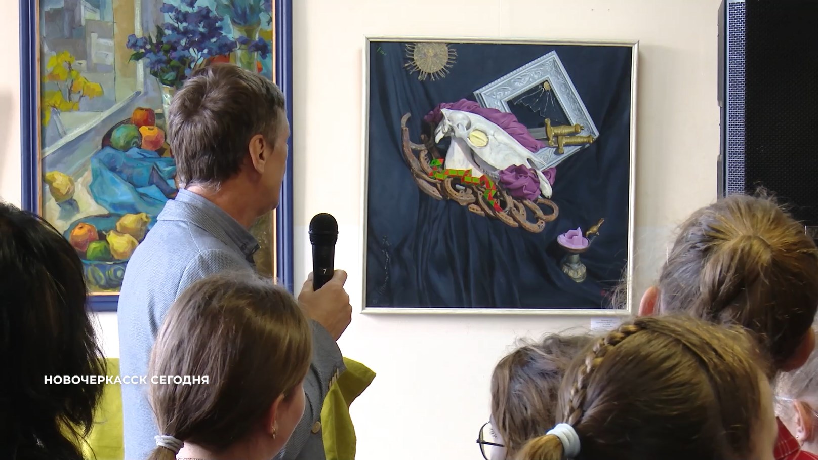Что такое символический натюрморт узнали юные художники - участники областного конкурса "В мире натюрморта". И убедились на практике, что обычные предметы могут нести еще и философский смысл. В новочеркасской детской художественной школе проходит выставка работ председателя ростовского отделения "Союза художников России" Олега Игнатова. Давайте и мы полюбуемся работами профессионала.
