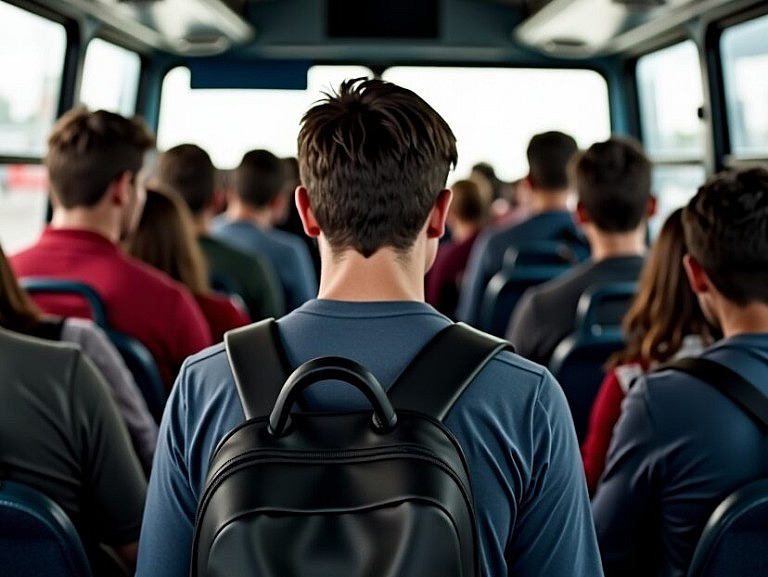 Однако есть и ещё один весьма важный момент. Идёт учебный год, ребята ездят в автобусах с большими рюкзаками. Вообще-то, находясь в салоне общественного транспорта, их надо держать в руке. Но в руке-то телефон!!! И студент или школьник не снимает рюкзак со спины, чем создаёт находящимся рядом массу неудобств.
