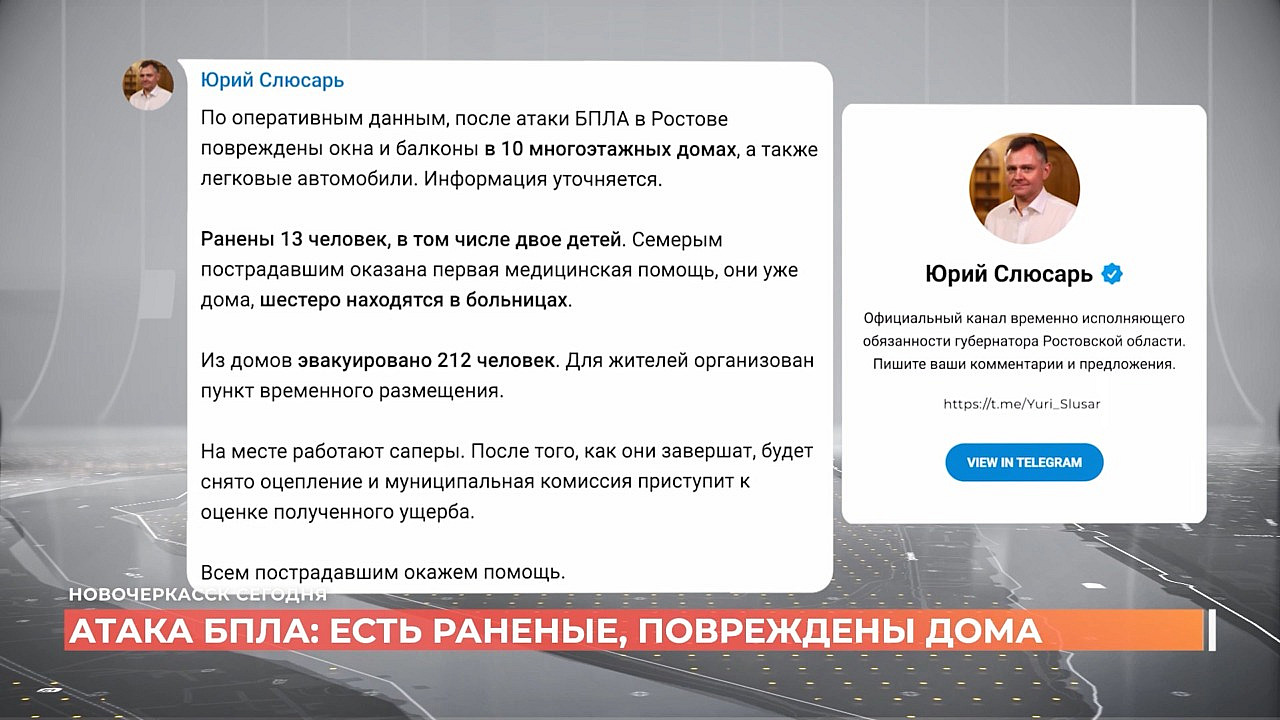 - последствия утренней атаки БПЛА на центр Ростова и государственные награды лучшим работникам АПК ;