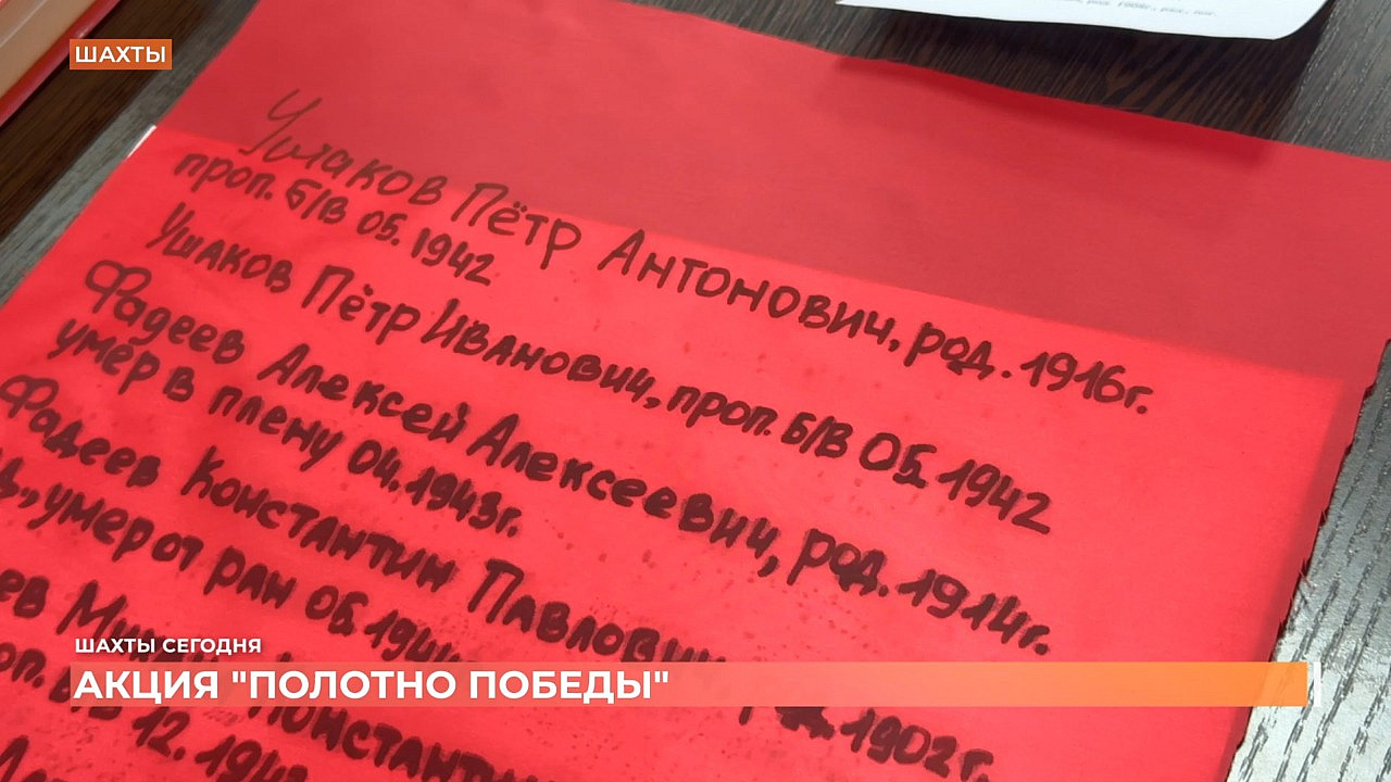 Шахтинцы активно принимают участие в региональной акции "Полотно Победы". Напомню инициировал ее глава региона Юрий Слюсарь. В этот раз к акции присоединились члены Общественной палаты города. Они оставили на отрезах красной ткани краткие истории подвигов своих дедов и прадедов, а также героев, принявших участие в освобождении города от немецко-фашистских захватчиков. А помогали общественникам активисты местного отделения Движения Первых. Они тоже вписали имена своих родственников в Полотно Победы.