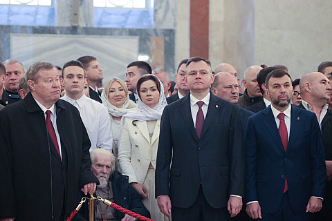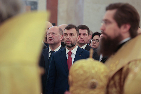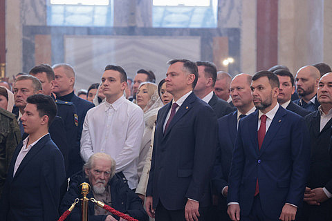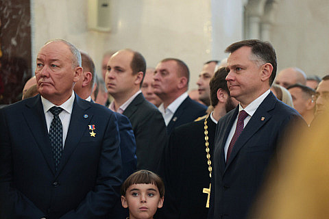 На богослужении присутствовали представители власти, в т.ч. губернатор Ростовской области Юрий Слюсарь и полномочный представитель Президента РФ в ЮФО Юрий Устинов, командиры и военнослужащие Южного военного округа, кадеты.