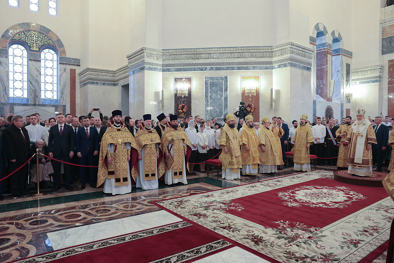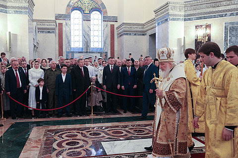 «Всех вас приветствую и поздравляю с этим историческим событием. Когда мы строим, освящаем храмы, мы закладываем фундамент для дальнейшего духовного, нравственного и всестороннего развития нашего народа, нашего общества, а через это – мощь нашего государства», - обратился к прихожанам патриарх Кирилл.
