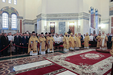 Предстоятель Русской православной церкви совершил чин Великого освящения главного войскового храма Южного военного округа. Божественную литургию Патриарх Кирилл совершил в сослужении главы Донской митрополии митрополита Ростовского и Новочеркасского Меркурия, преосвященных архипастырей, духовенства Донской митрополии.