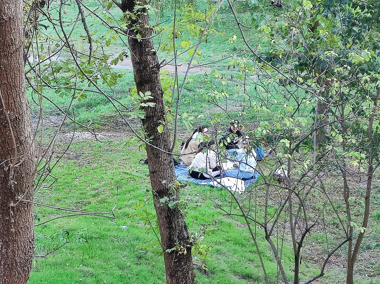 Поразительно, что Ботсад, как оказалось, излюбленное место отдыха не только семей с детьми или возрастных ростовчан, но и молодёжи - юноши и девушки кто парами, кто стайками приходят сюда. Это и волонтёры, и любители пикников, и так - пофоткаться: ножку назад - ножку вперёд :)