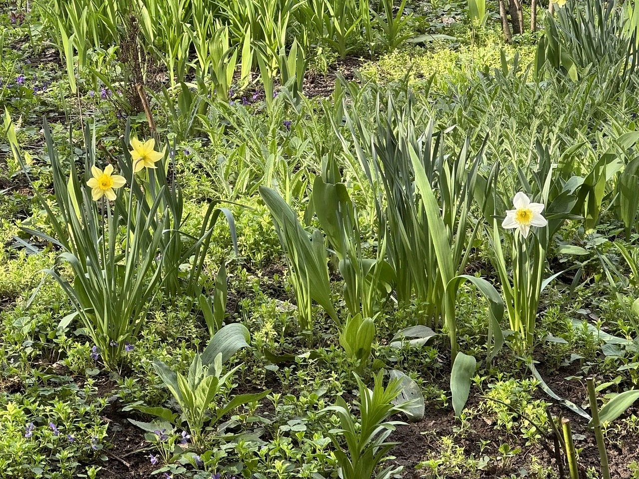 Уже давно цветут садовые гиацинты, нарциссы, ковриком стелются цветы, которые у нас на юге называют "салатками".