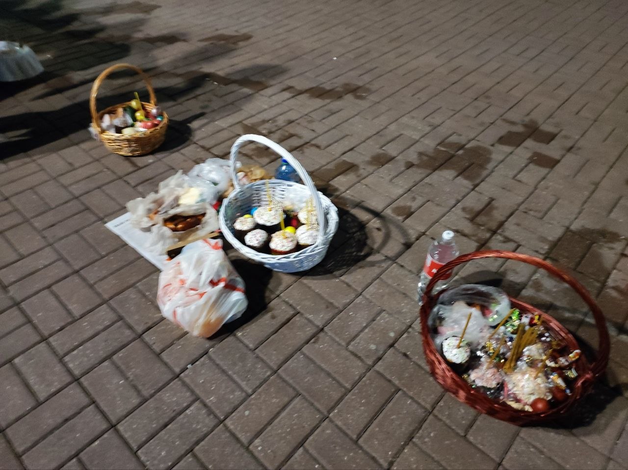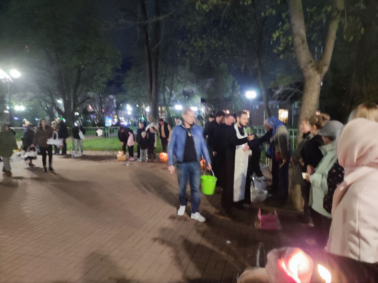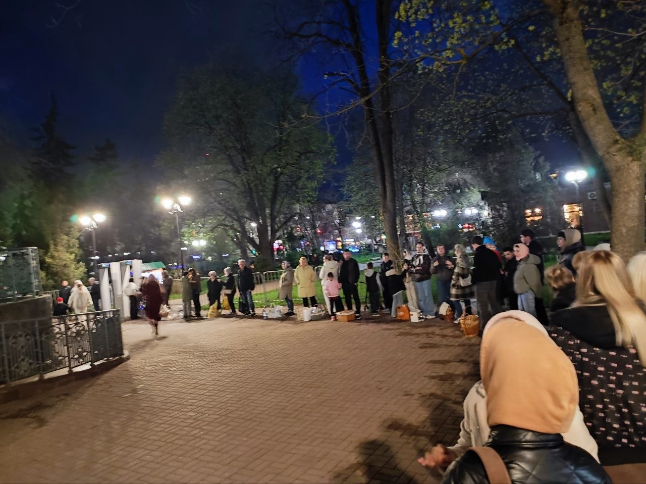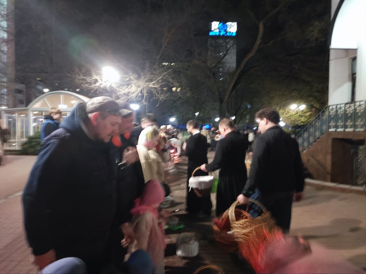 В Великую Субботу у храмов освящали пасхальную снедь. Тысячи верующих - воцерковлённых и просто следующих православной традиции - стояли у храмов кто с корзинками, кто с пакетами, а кто и просто держал в руках скромный куличик для завтрашнего разговления.