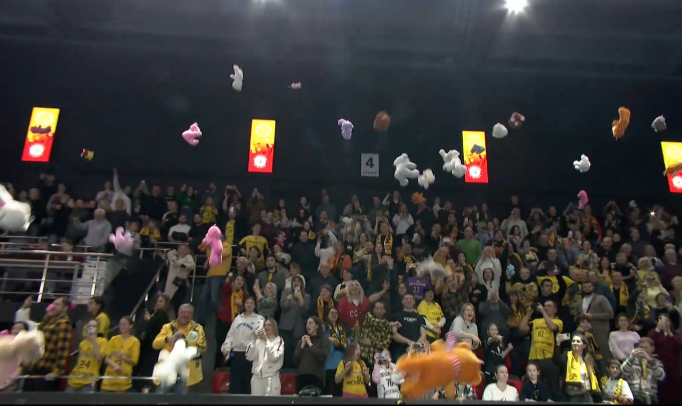 Перед игрой пришедшим на матч предлагалось купить игрушку, а в конце бросить её на поле - устроить "мишкопад".