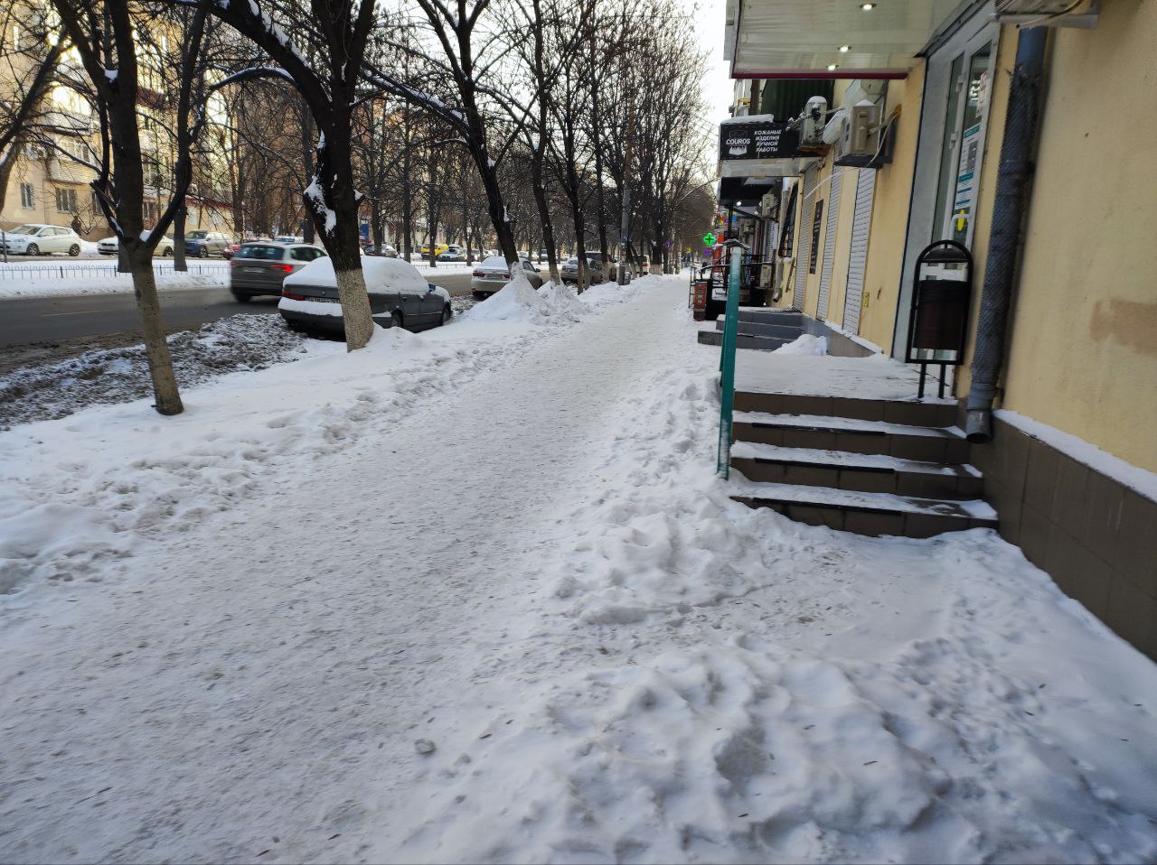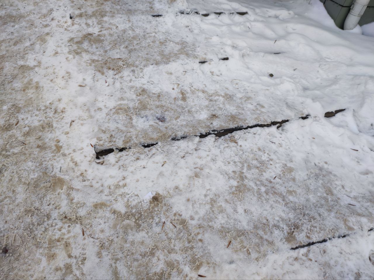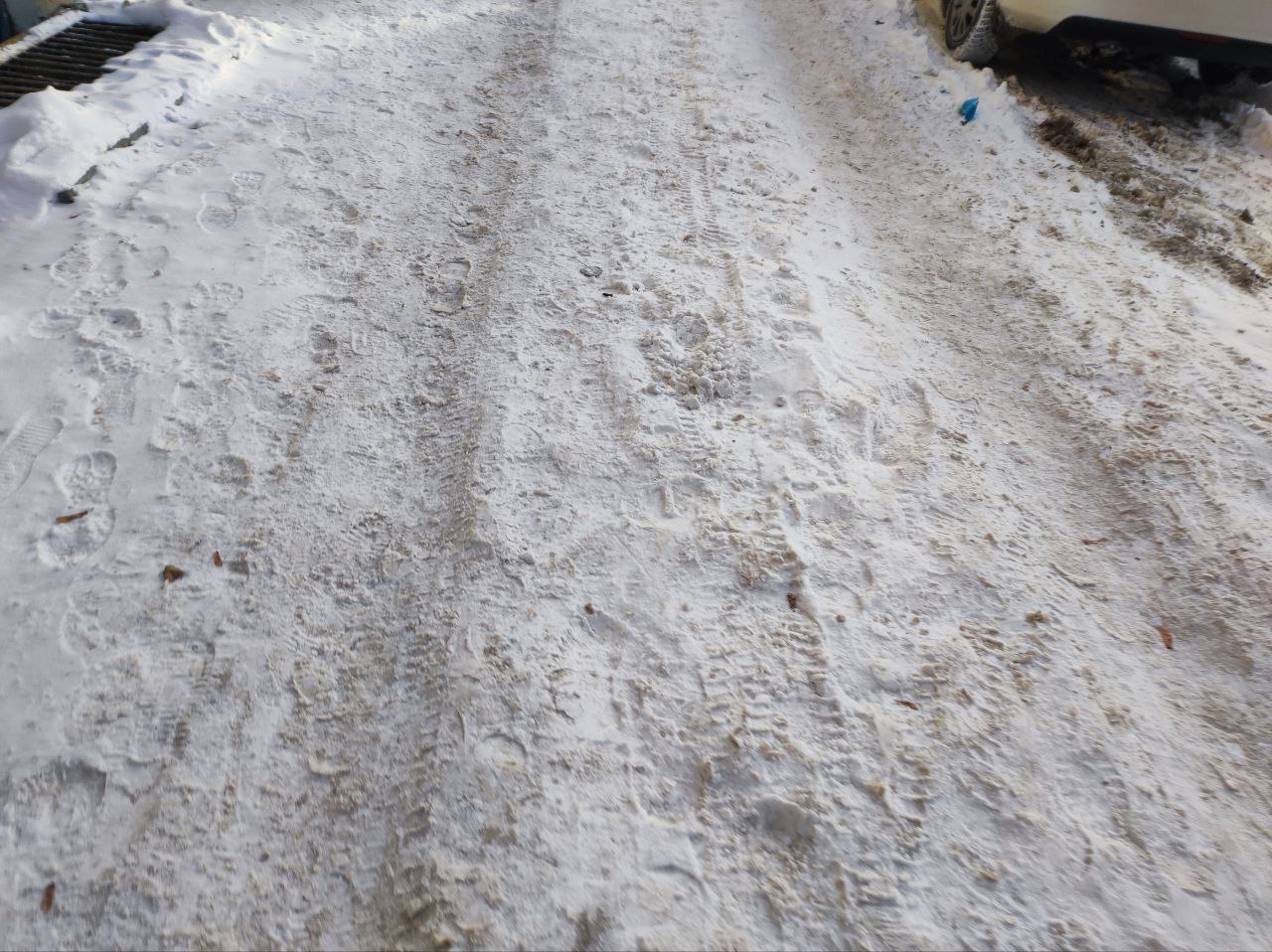 Если дороги в основном расчищены и обрабатываются антигололёдными материалами, то пешеходные дорожки даже в местах высокого трафика остаются утоптанными и уже становятся гололёдными.