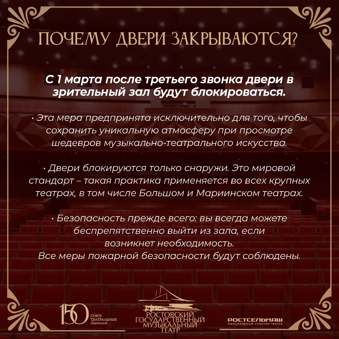 В театре отслеживают все комментарии, учитывают претензии и пожелания зрителей. И потому опубликовали несколько карточек с разъяснениях о причинах введения ограничений и нюансах этих нововведений.