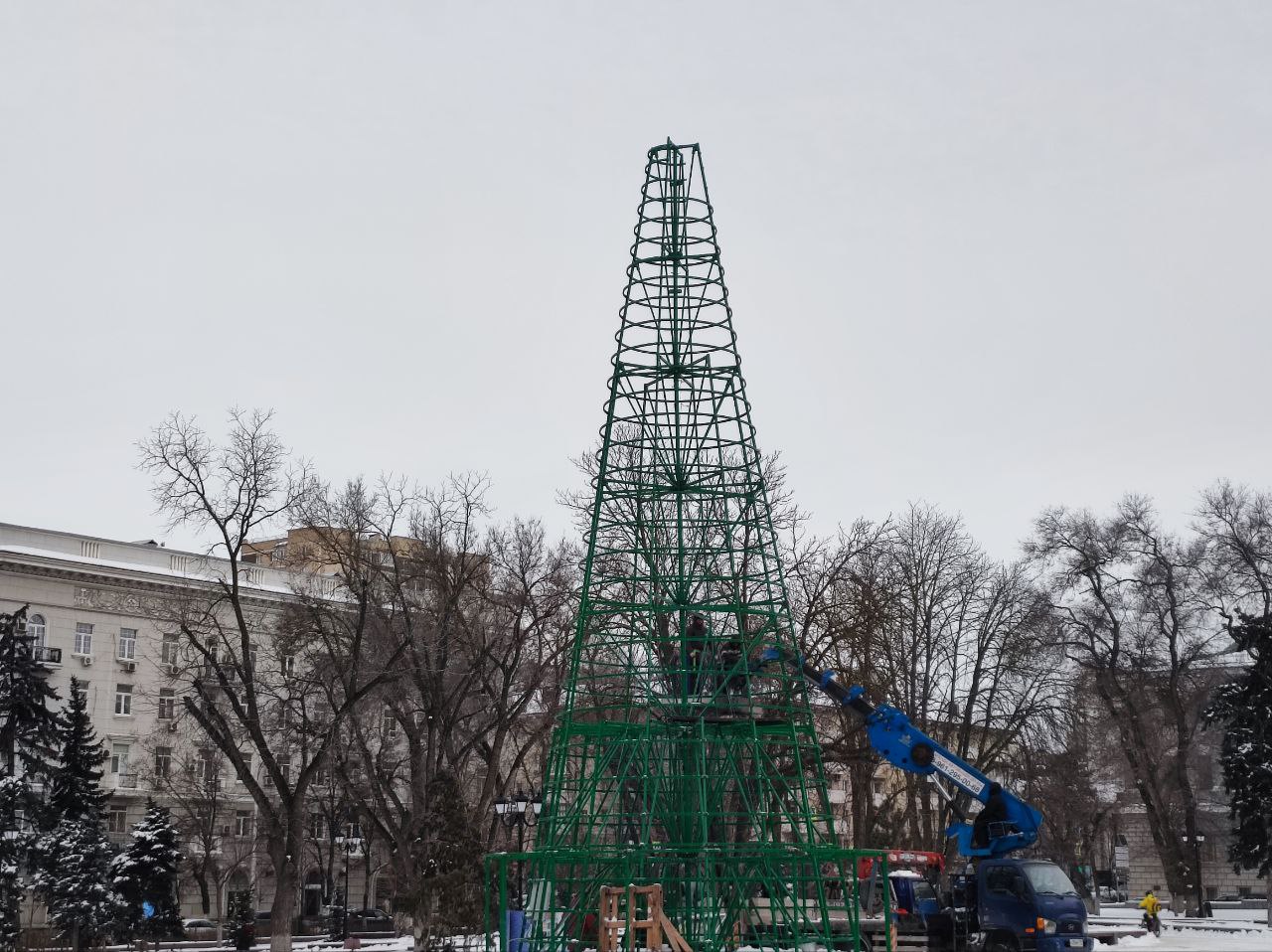 А сегодня продолжают разбирать городские ёлки. Ещё больше недели назад убрали ёлку возле Музтеатра. В других местах тоже разбирают.