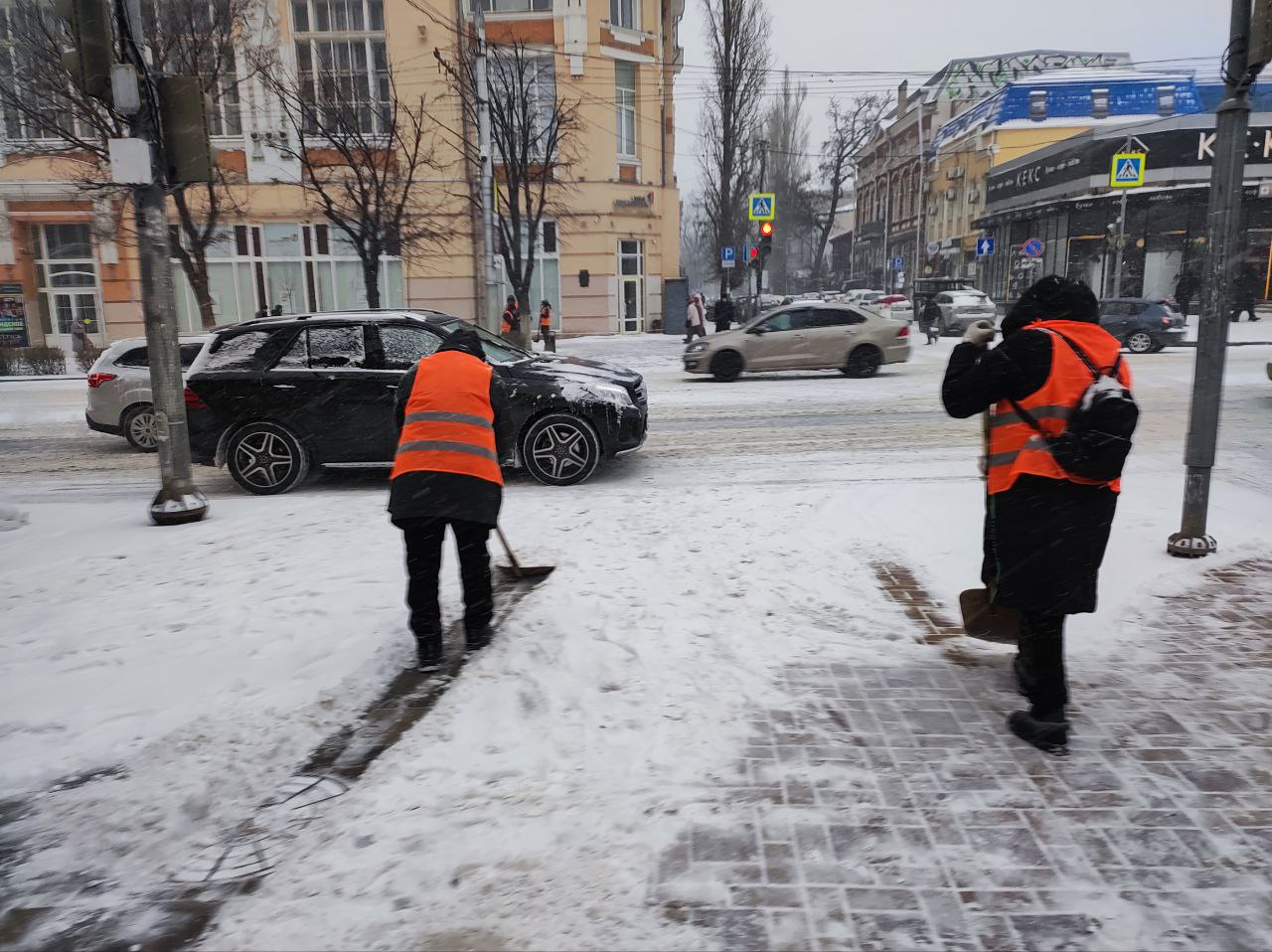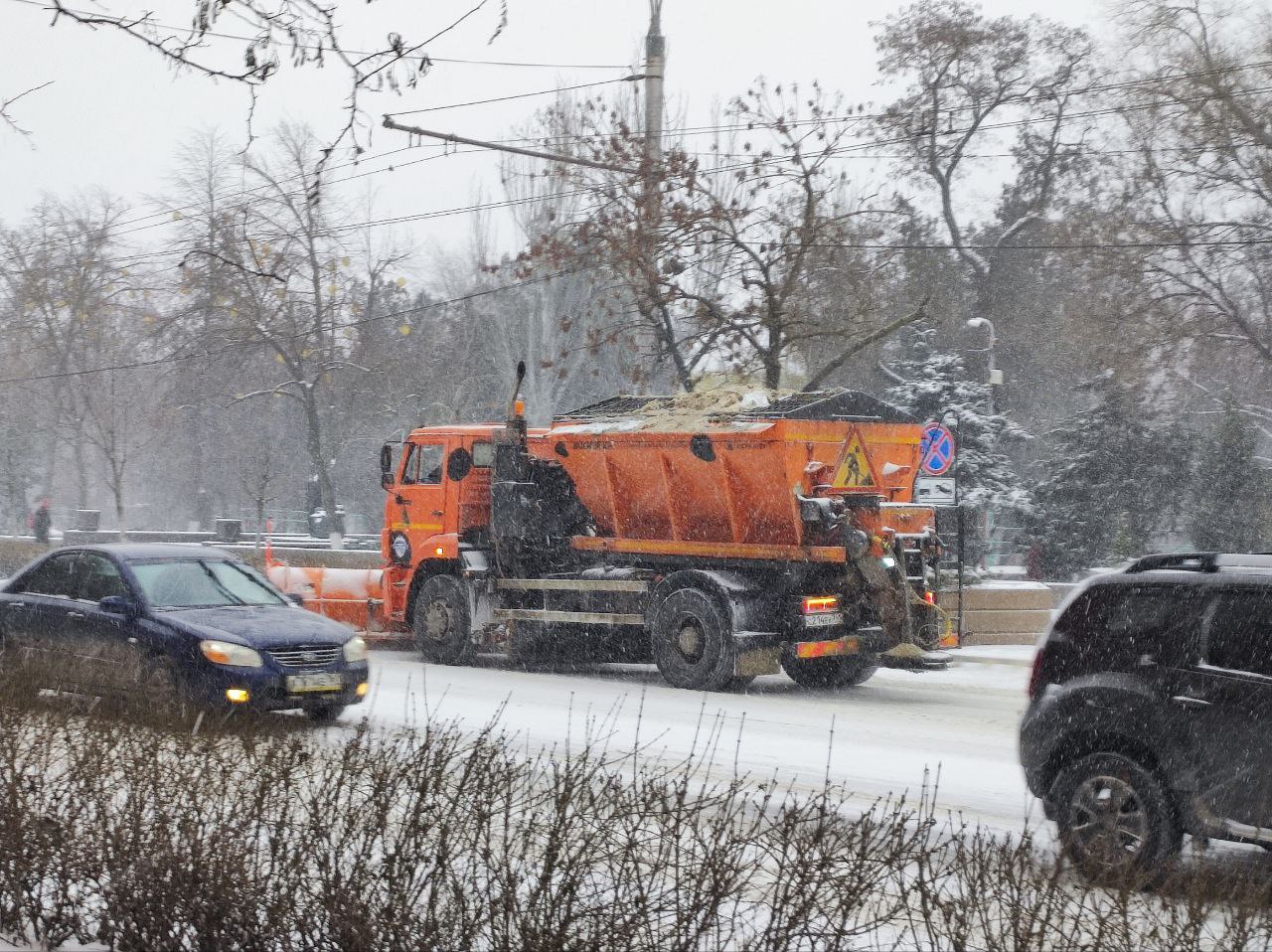 Сегодня уже в первые часы снегопада на дороги города вышли комбинированные дорожные машины (КДМ), - чистят и рассыпают антигололёдную смесь. Замечены коммунальные работники с лопатами - тоже занимаются расчисткой.