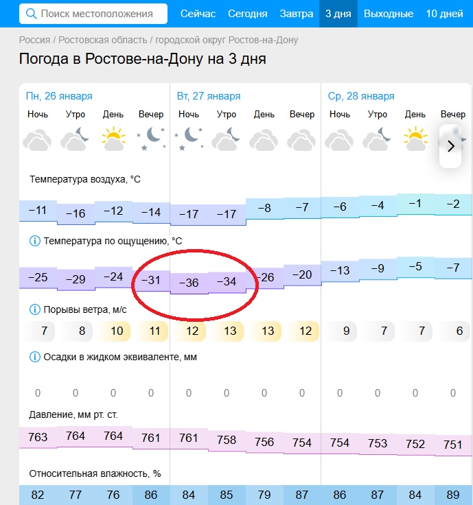 Добавьте к этому высокую влажность (85%) и ветер с порывами 10-15 м/с. По ощущениям - минус 30-35.