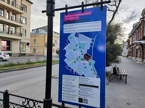 По городу в разных местах установлены аншлаги, где можно прочитать о достопримечательностях, а также, наведя телефон на QR-код, прослушать информацию аудиогида. Это очень удобно!