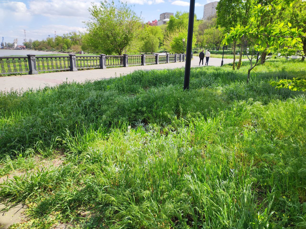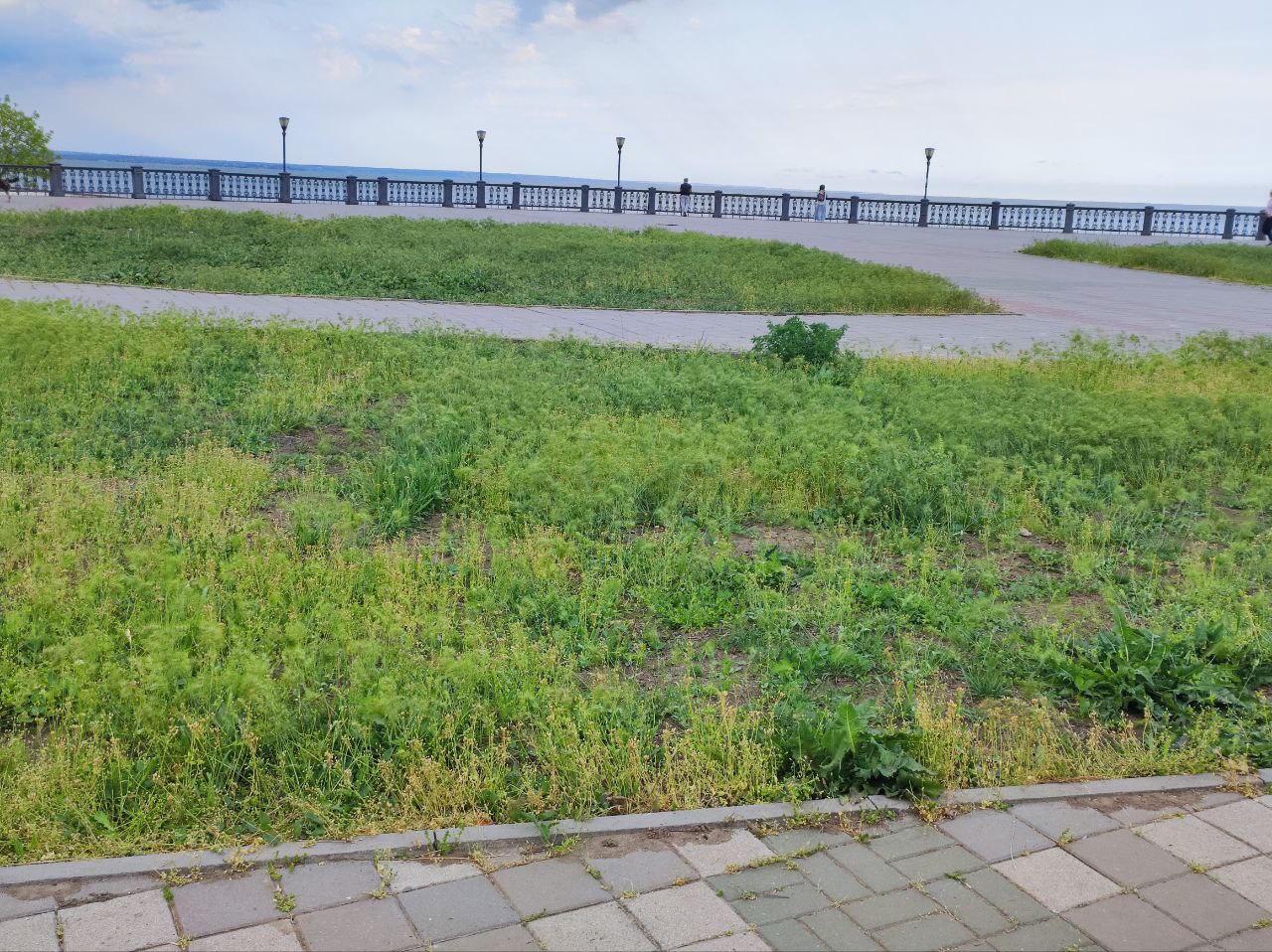 Какие-то места, скверы отремонтированы и содержатся в порядке. Но вот мы ходили два для по городу – и практически нигде не увидели цветов. Ростов утопает в тюльпанах, а Таганрог – в траве. Даже на центральной набережной клумбы заросли высокой травой. Организован даже полив – но растут только одуванчики, пырей да пастушья сумка. Причём трава бушует! А на носу – Первомай, сюда приедет много людей. И что они увидят – туристический центр?!