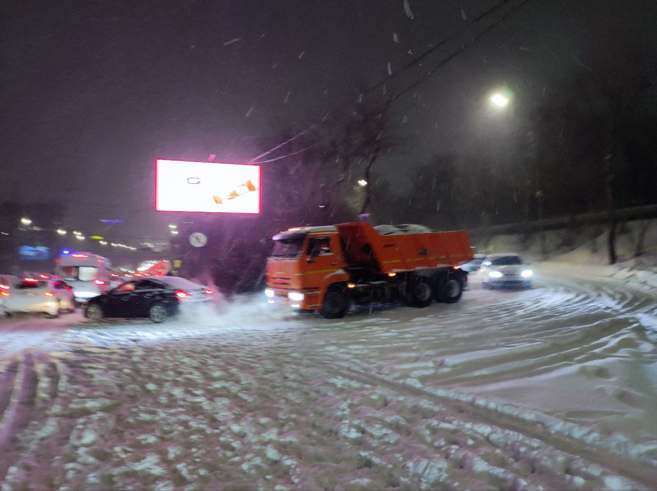 Ну, что не чистят - неправда. В районе семи вечера мы видели, как на высокой скорости сплошной шеренгой шли "КамАЗы" с ковшами. Где-то, конечно, КДМки так же, как и все, стояли в пробках. А начни они чистить - пробки не рассосались бы до полуночи.