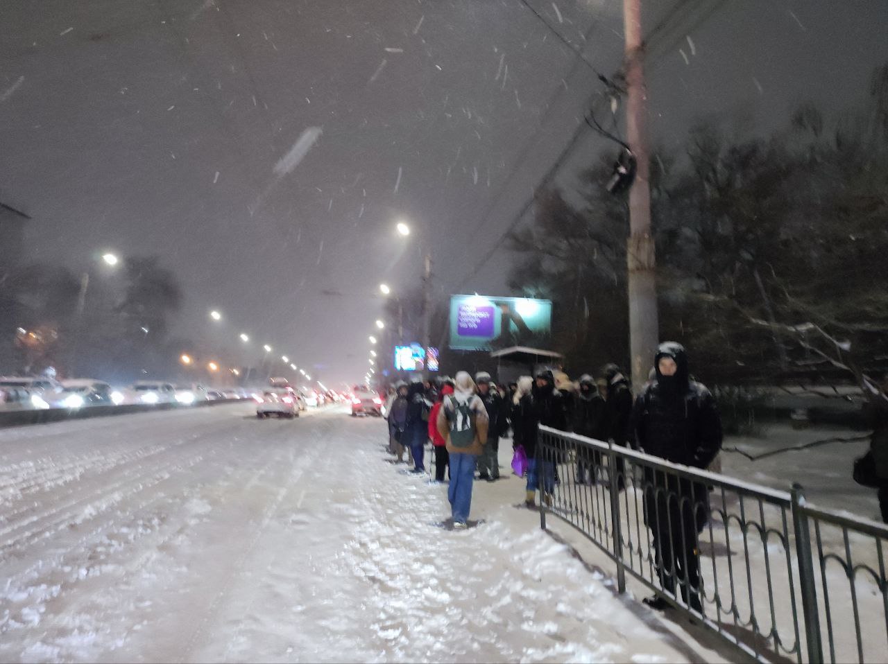 Автобусы были - те, которые смогли пробиться. Но некоторые проезжали мимо остановок, потому что брать пассажиров просто было некуда.